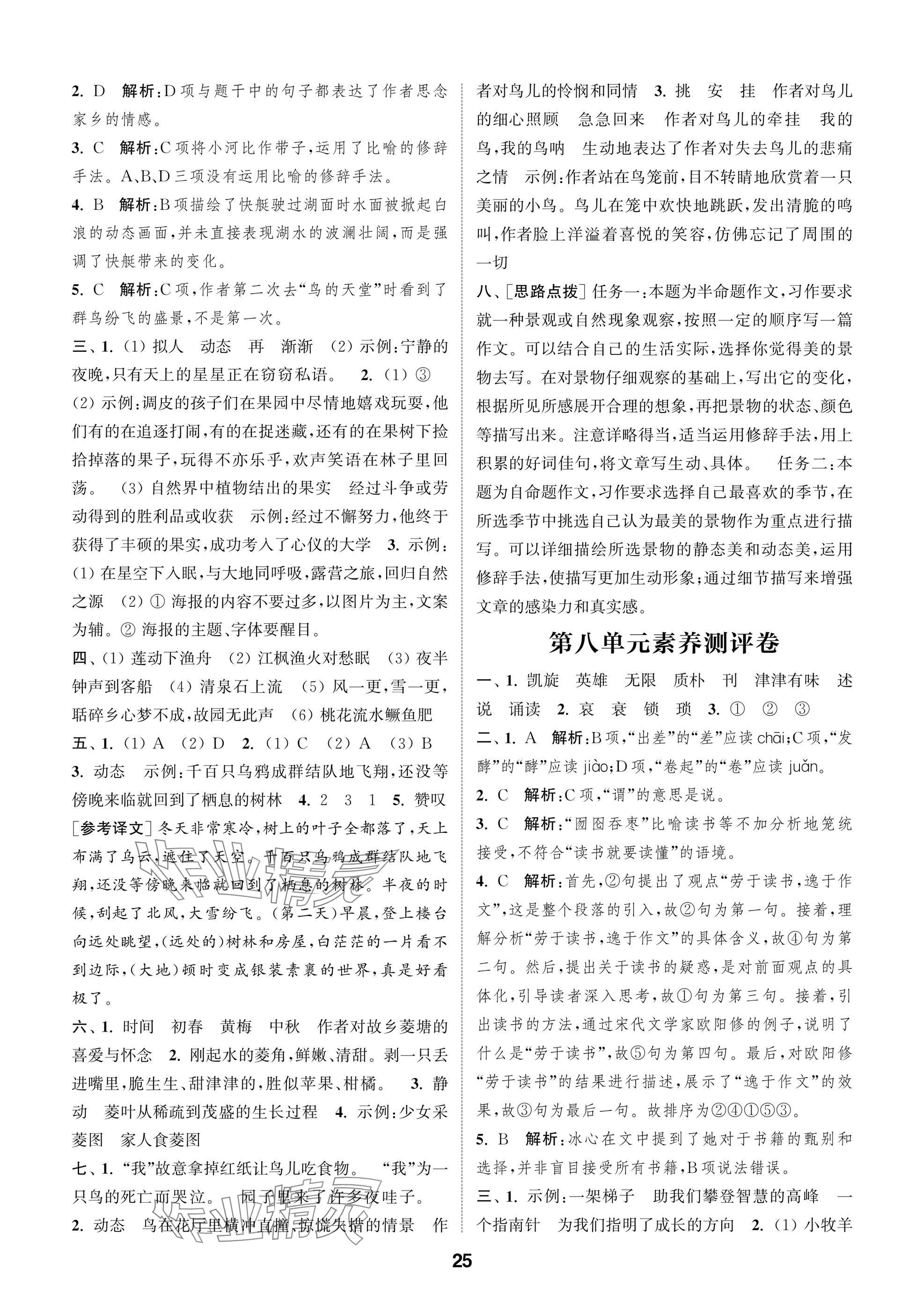 2025年课时作业本闯关练五年级语文上册人教版参考答案第25页