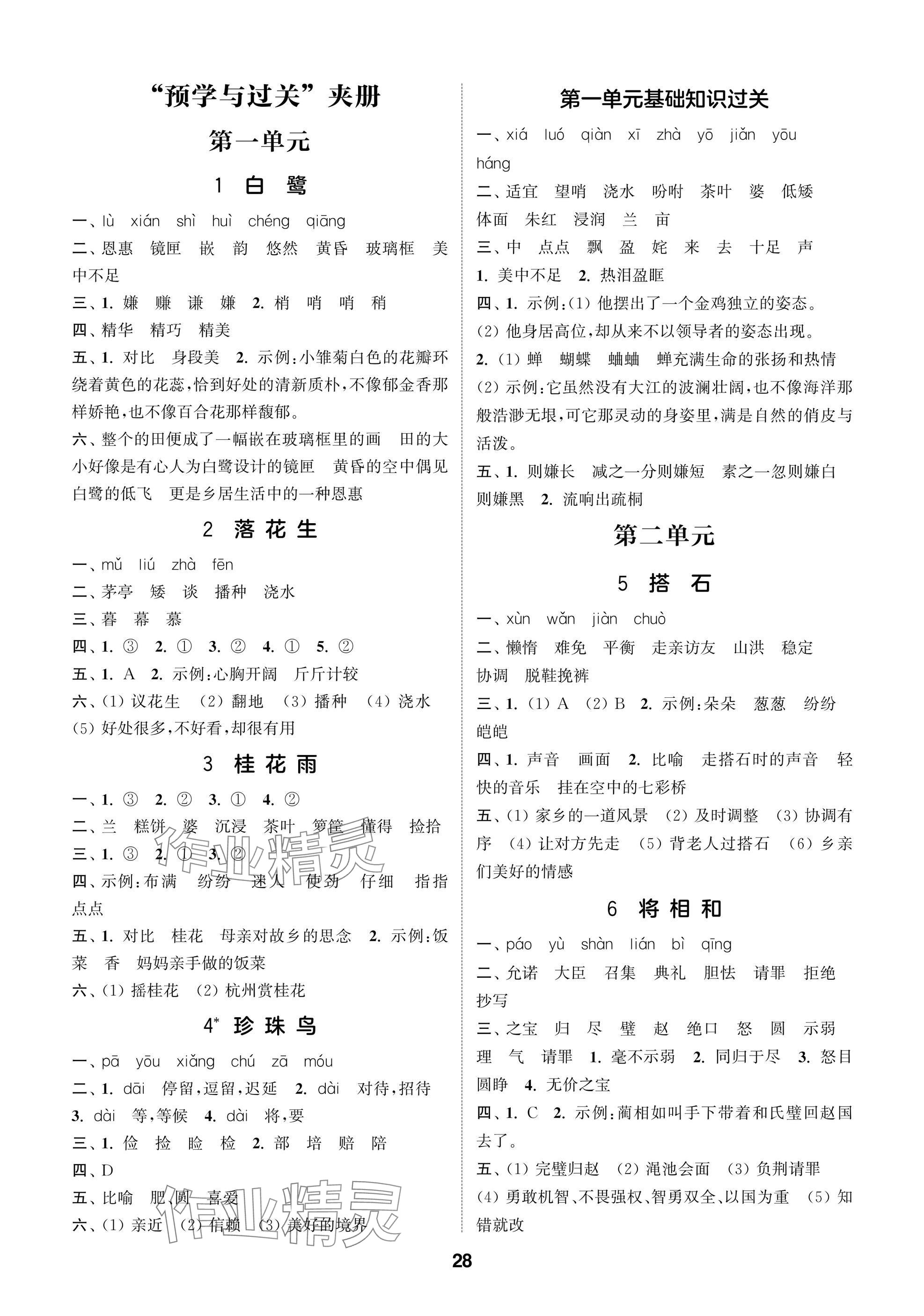 2025年课时作业本闯关练五年级语文上册人教版参考答案第28页