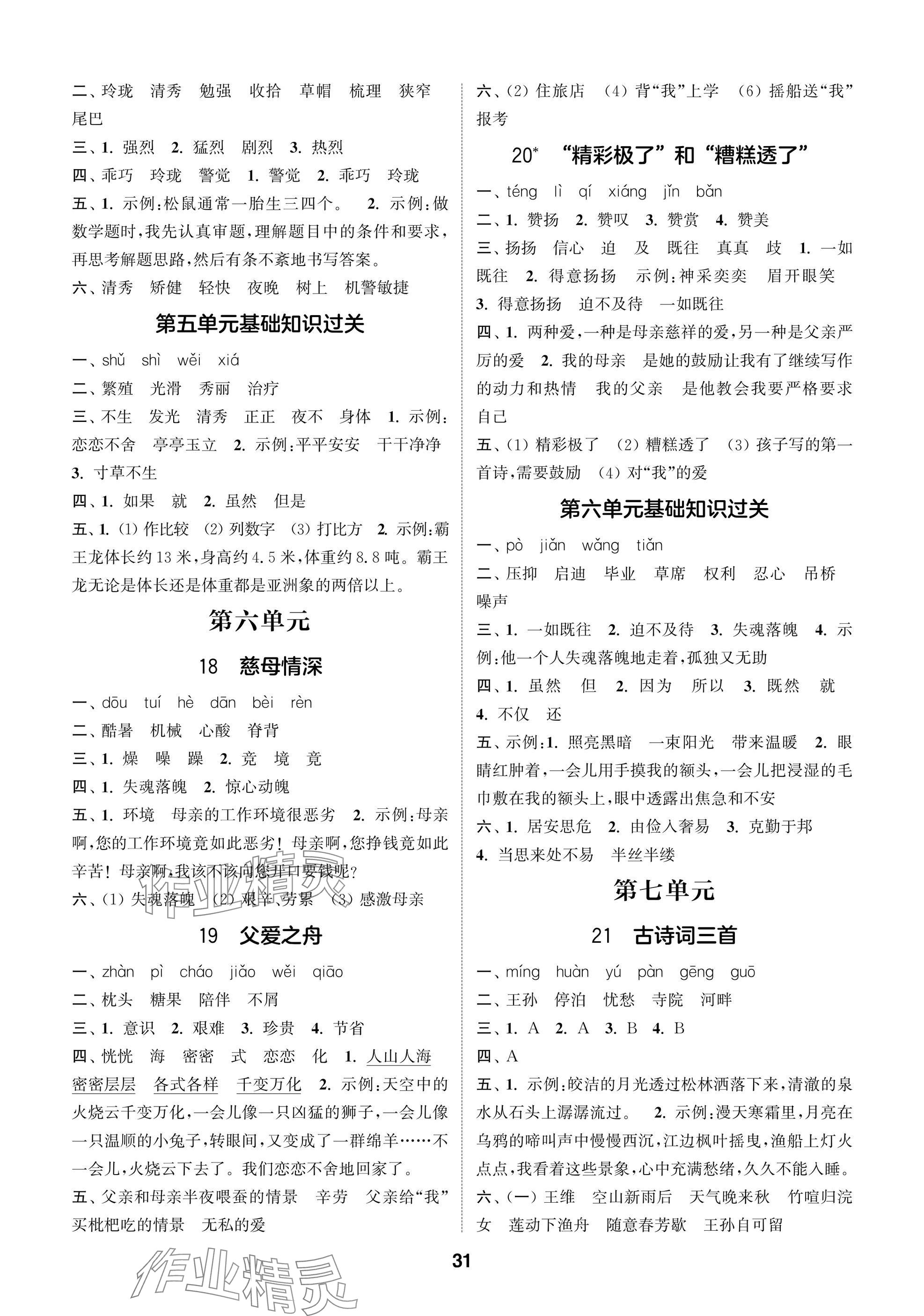 2025年课时作业本闯关练五年级语文上册人教版参考答案第31页
