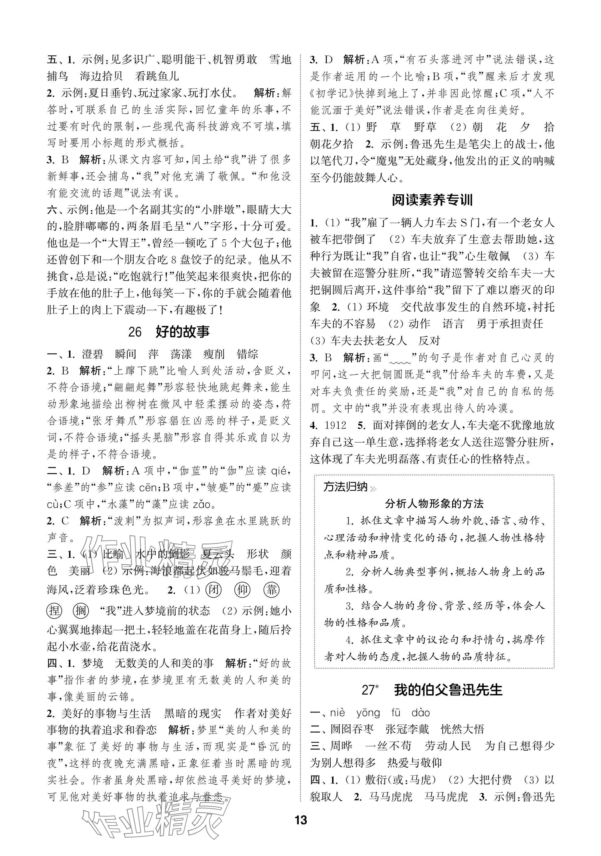 2025年课时作业本闯关练六年级语文上册人教版参考答案第13页
