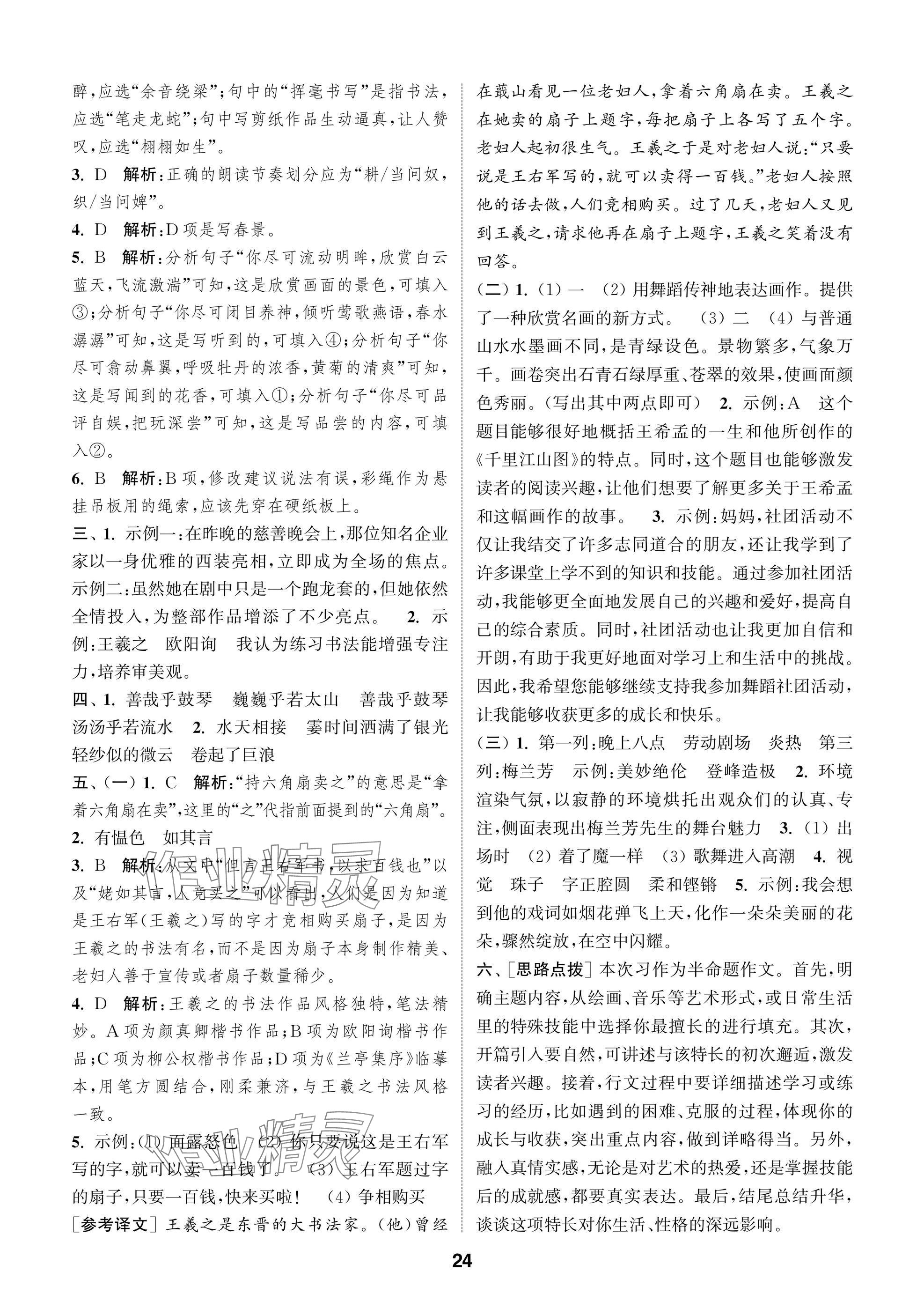 2025年课时作业本闯关练六年级语文上册人教版参考答案第24页