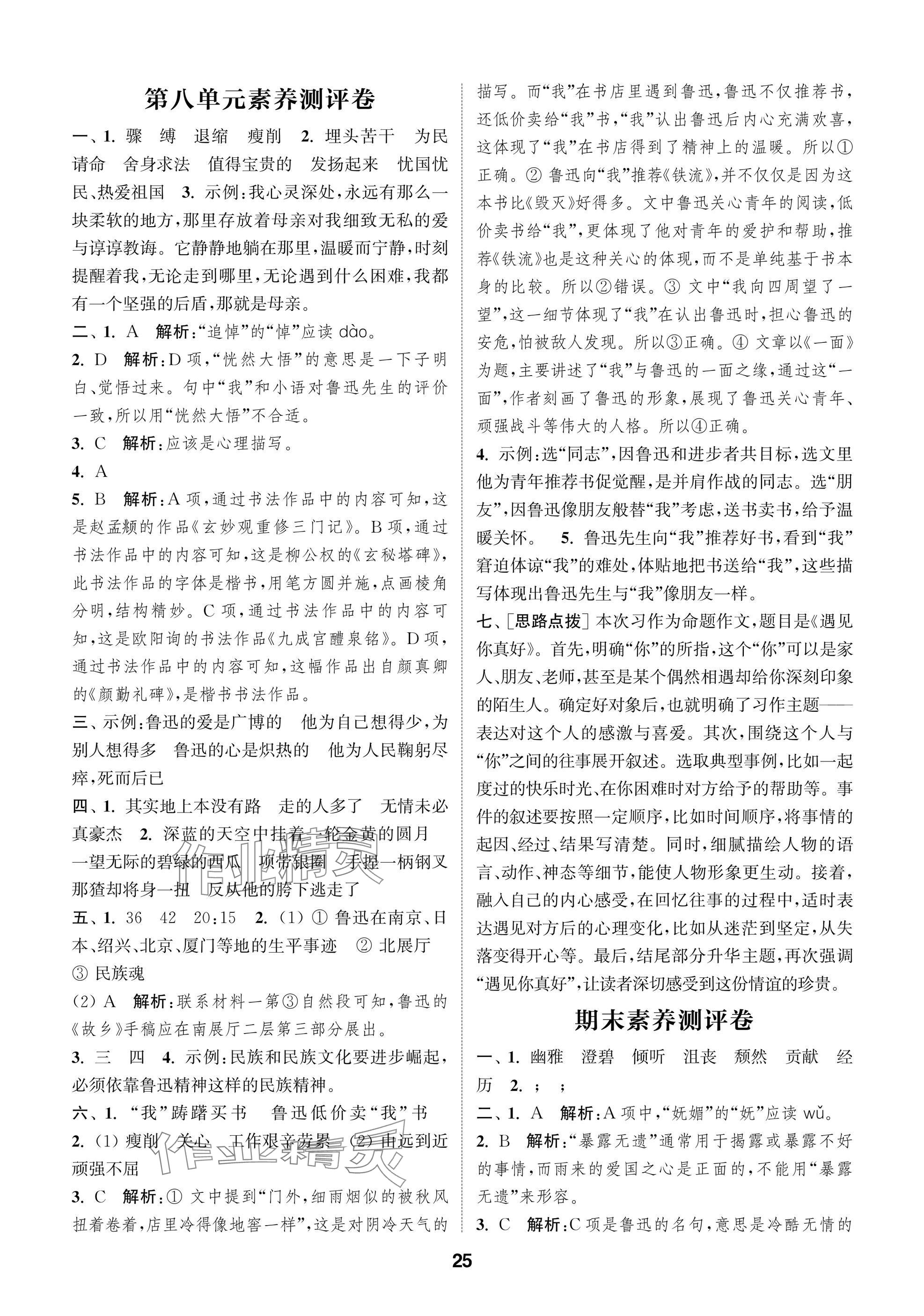 2025年课时作业本闯关练六年级语文上册人教版参考答案第25页