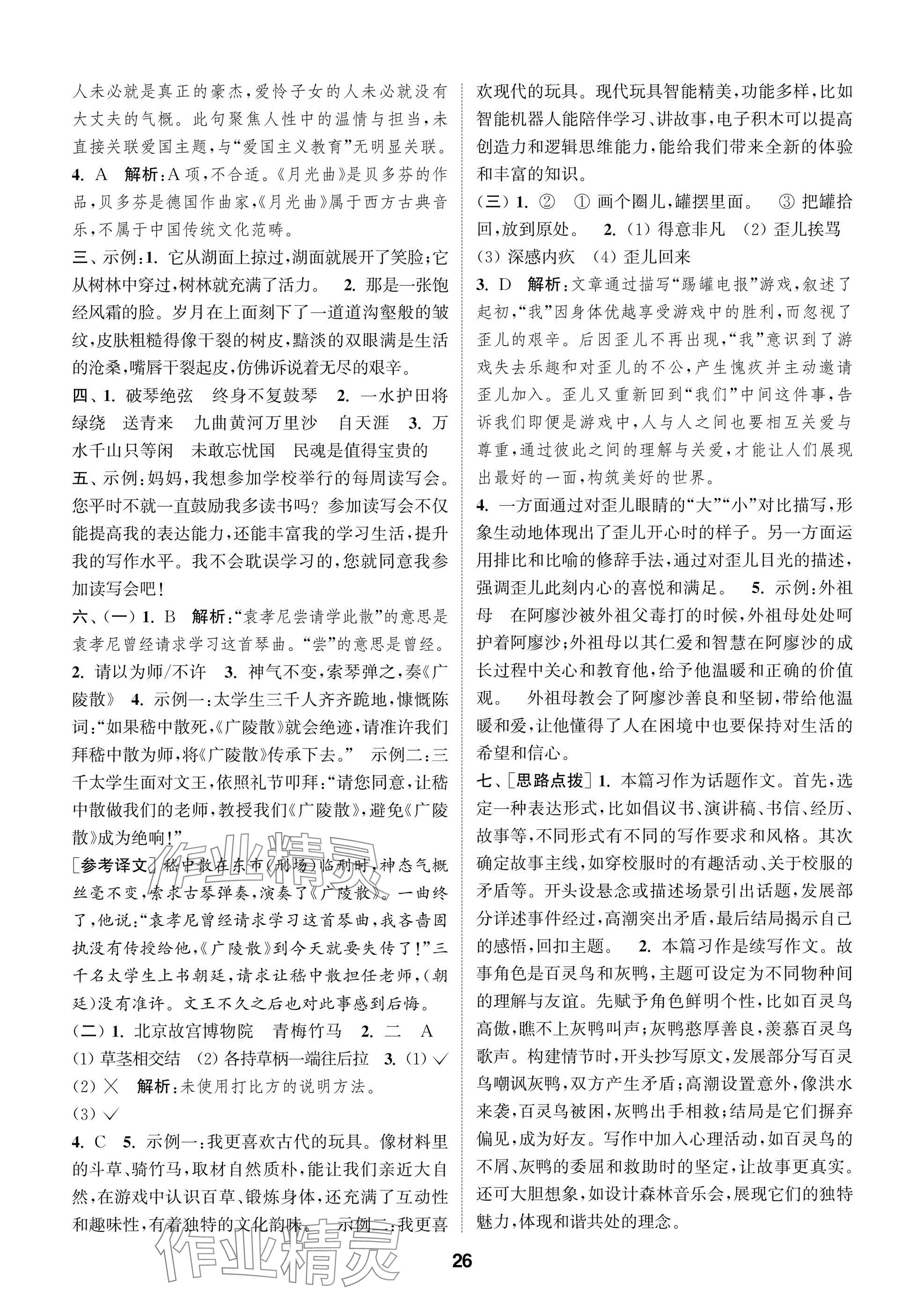2025年课时作业本闯关练六年级语文上册人教版参考答案第26页
