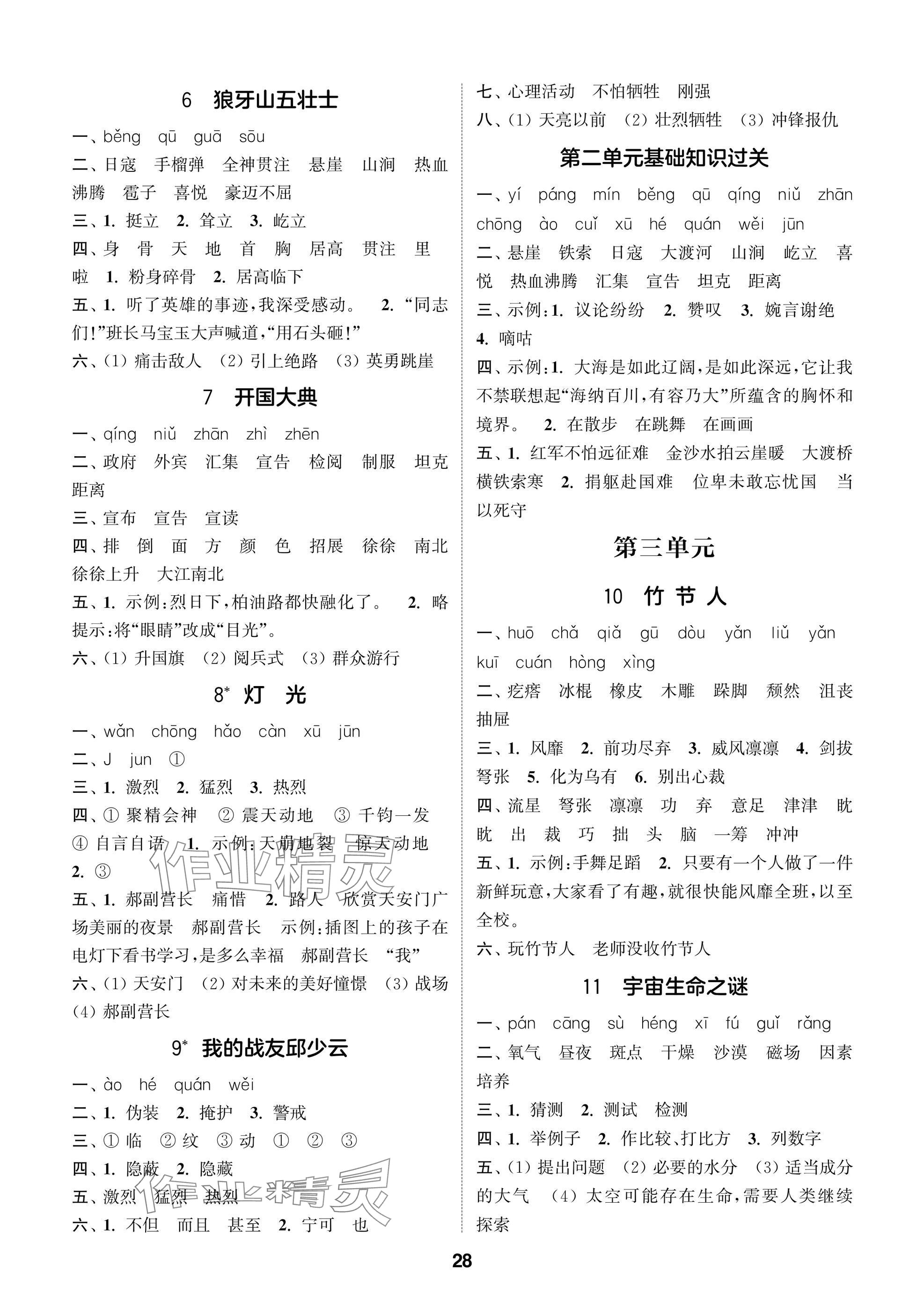 2025年课时作业本闯关练六年级语文上册人教版参考答案第28页