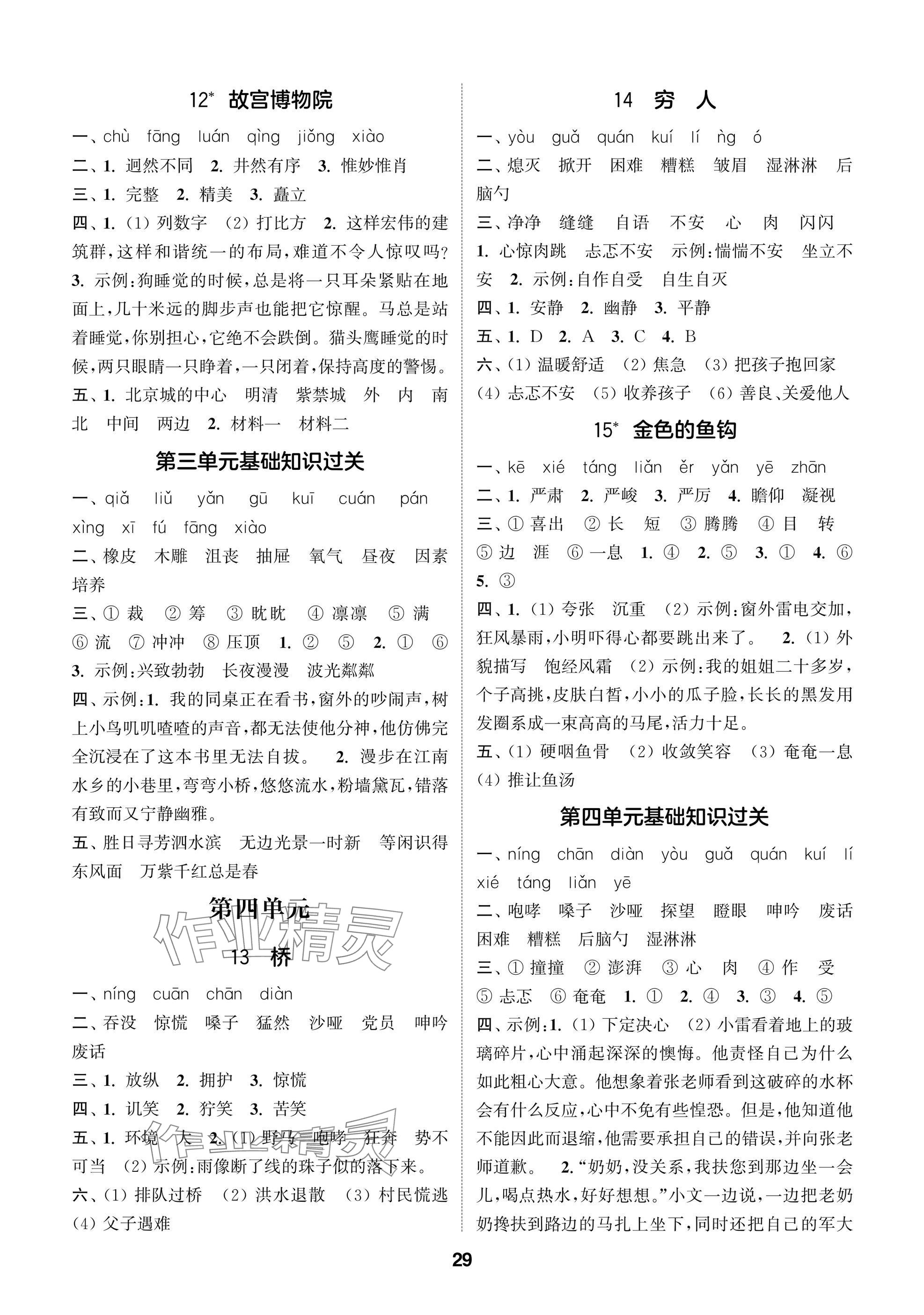 2025年课时作业本闯关练六年级语文上册人教版参考答案第29页