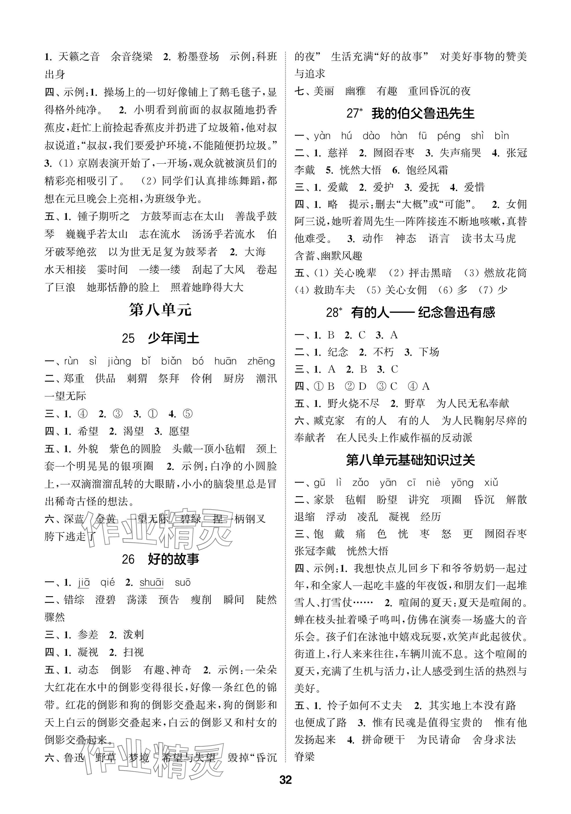 2025年课时作业本闯关练六年级语文上册人教版参考答案第32页