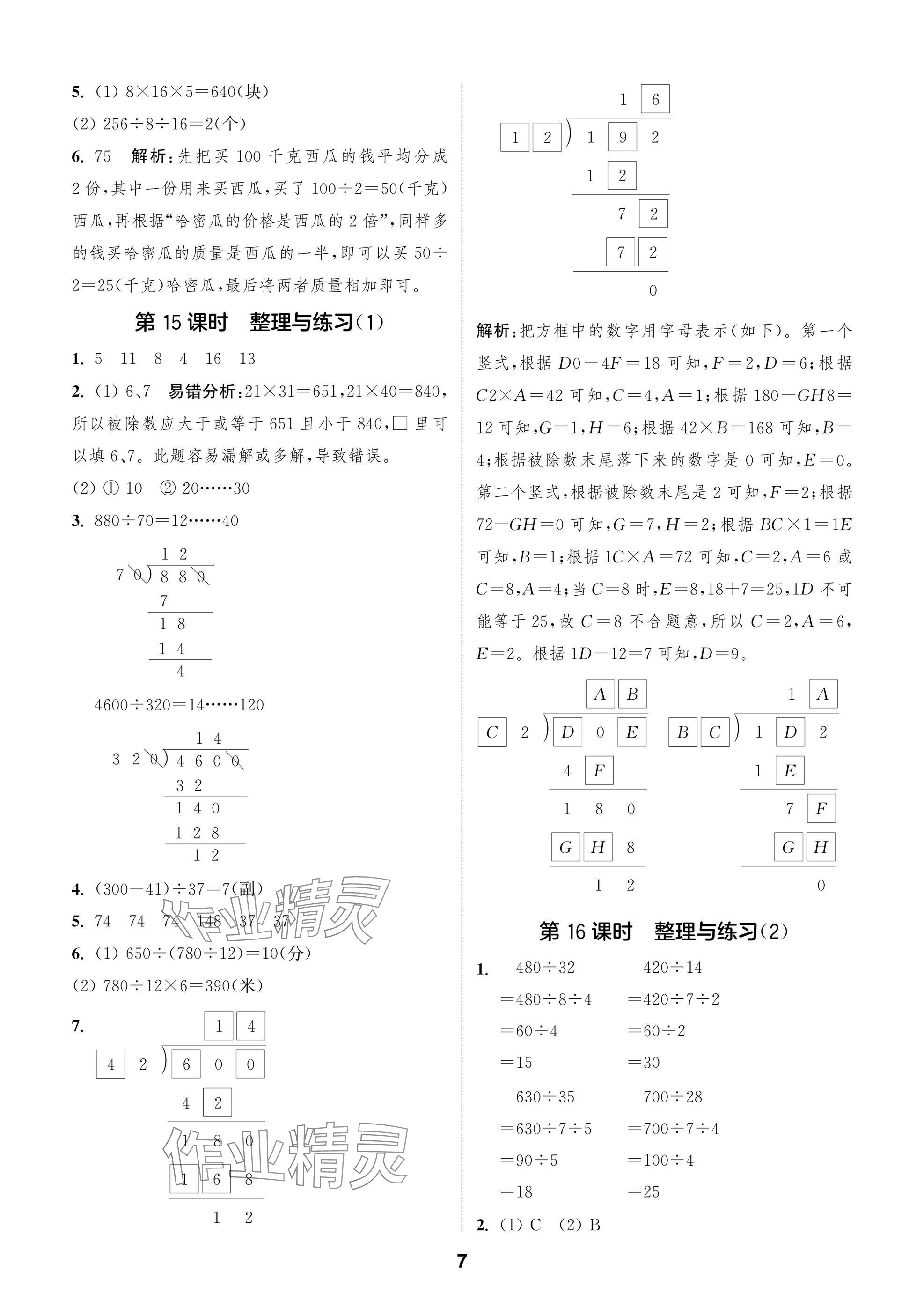 2025年课时作业本闯关练四年级数学上册苏教版参考答案第7页