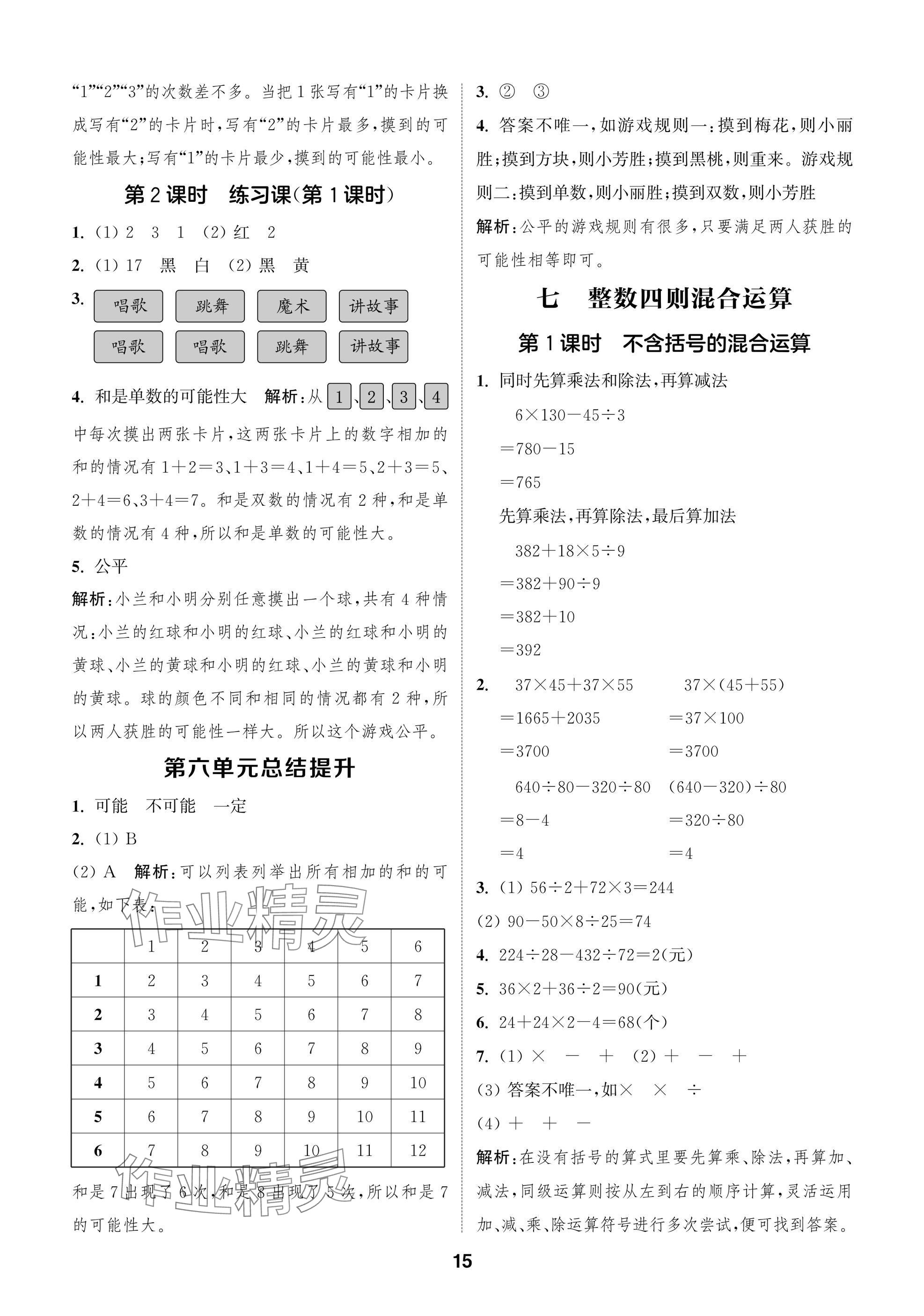 2025年课时作业本闯关练四年级数学上册苏教版参考答案第15页