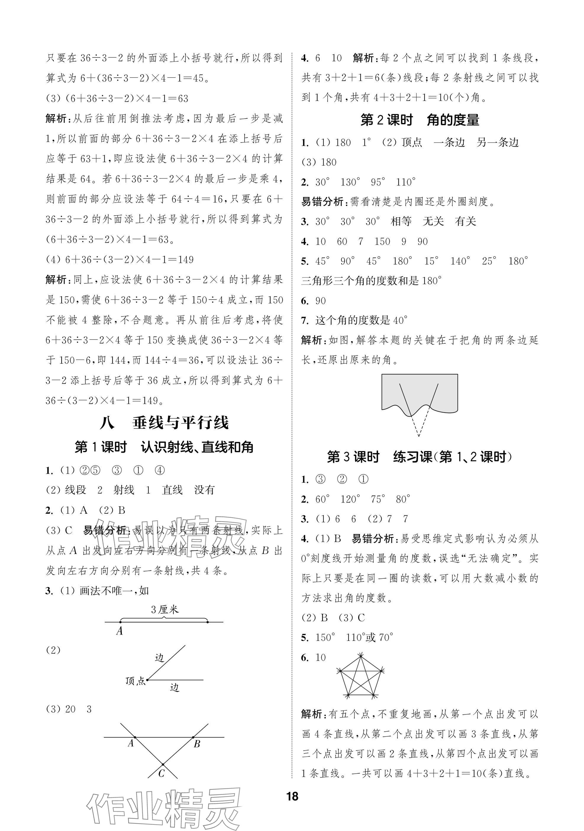 2025年课时作业本闯关练四年级数学上册苏教版参考答案第18页