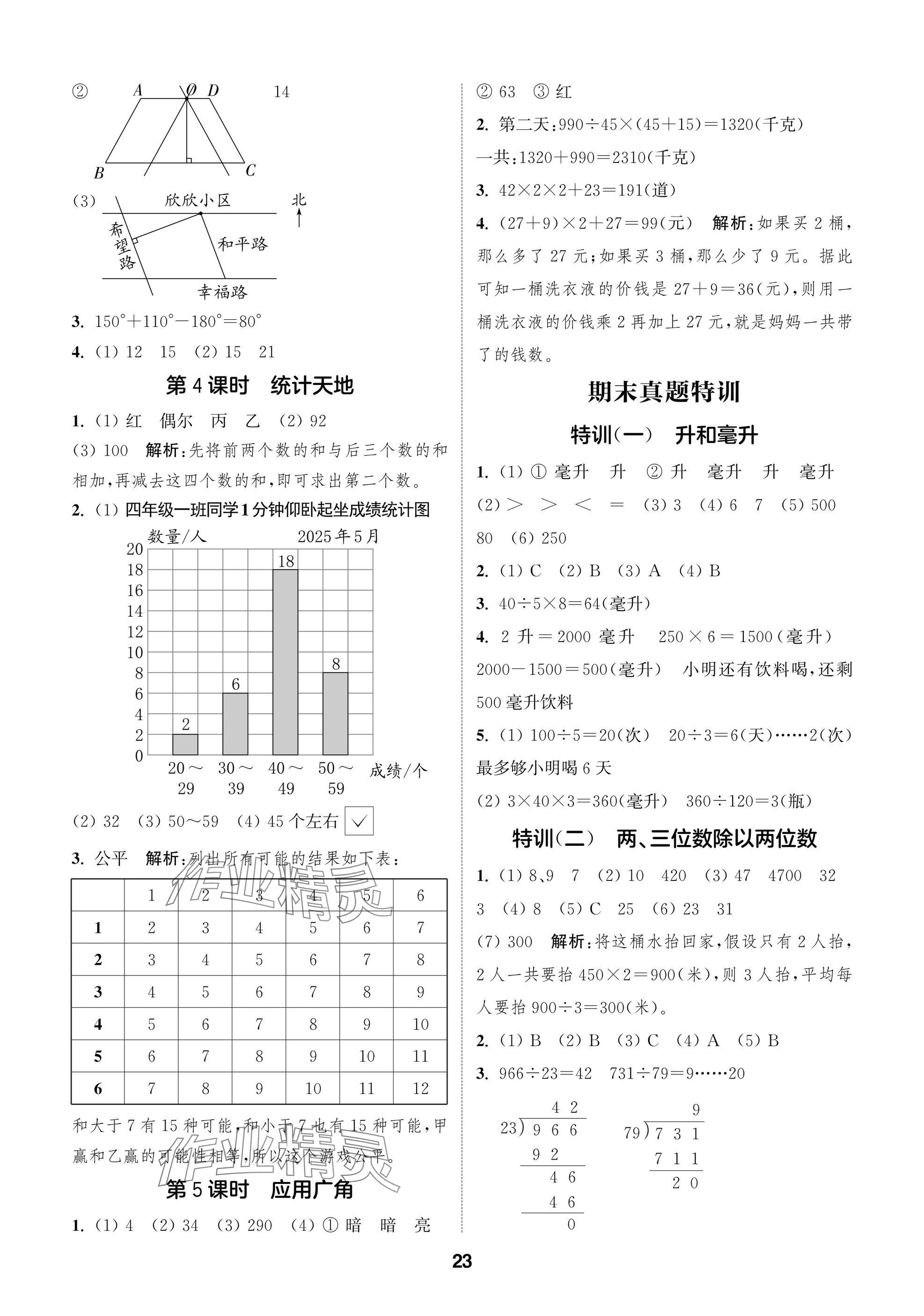 2025年课时作业本闯关练四年级数学上册苏教版参考答案第23页