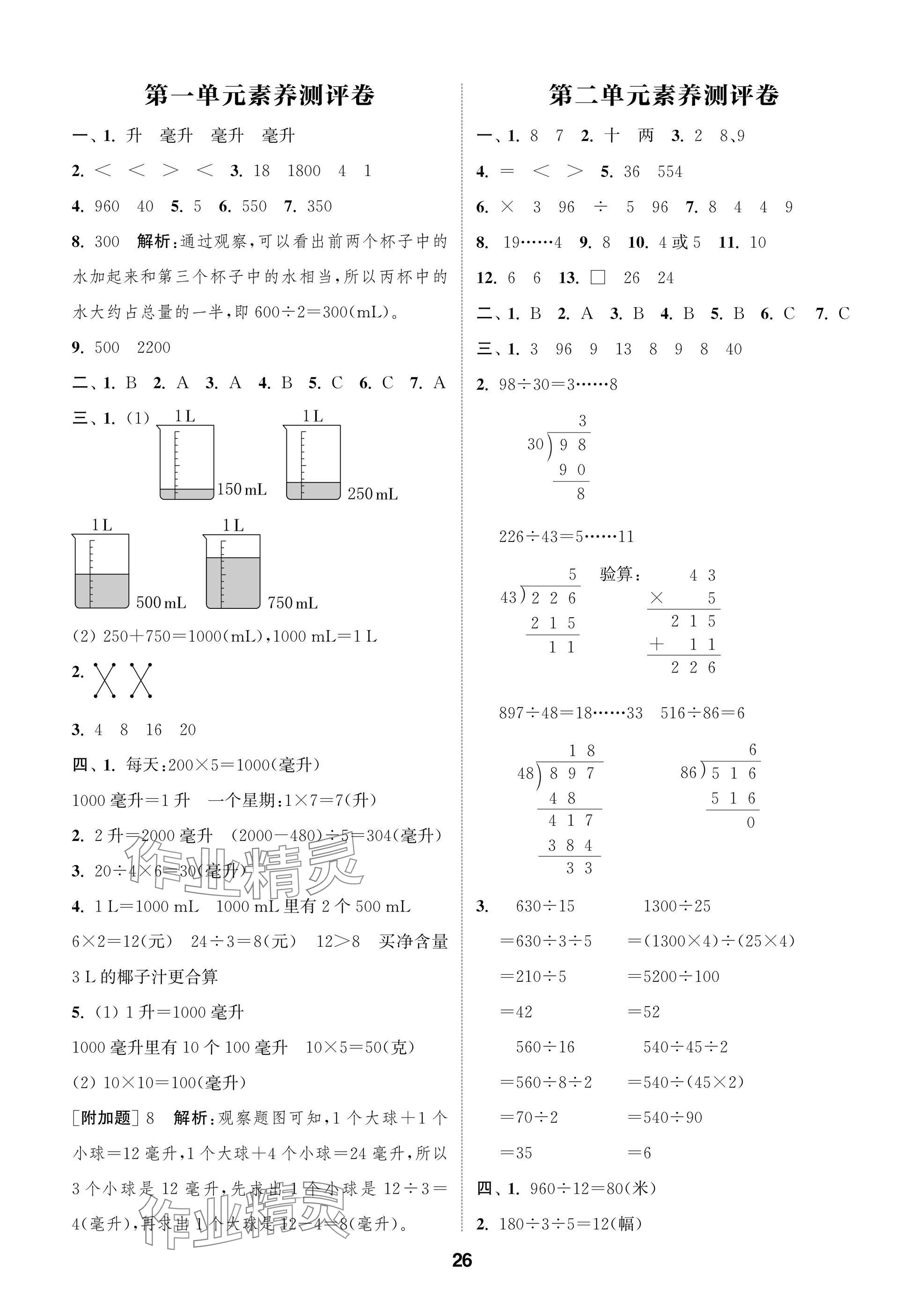 2025年课时作业本闯关练四年级数学上册苏教版参考答案第26页