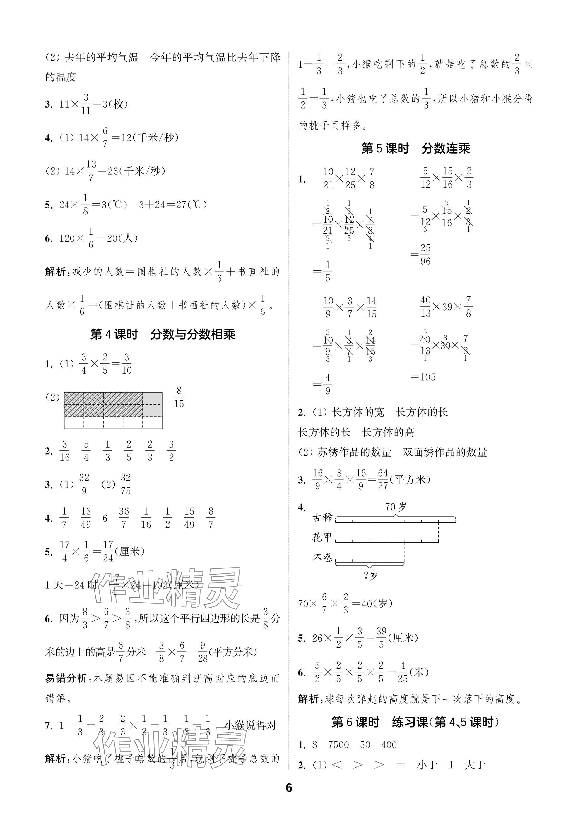 2025年课时作业本闯关练六年级数学上册苏教版参考答案第6页