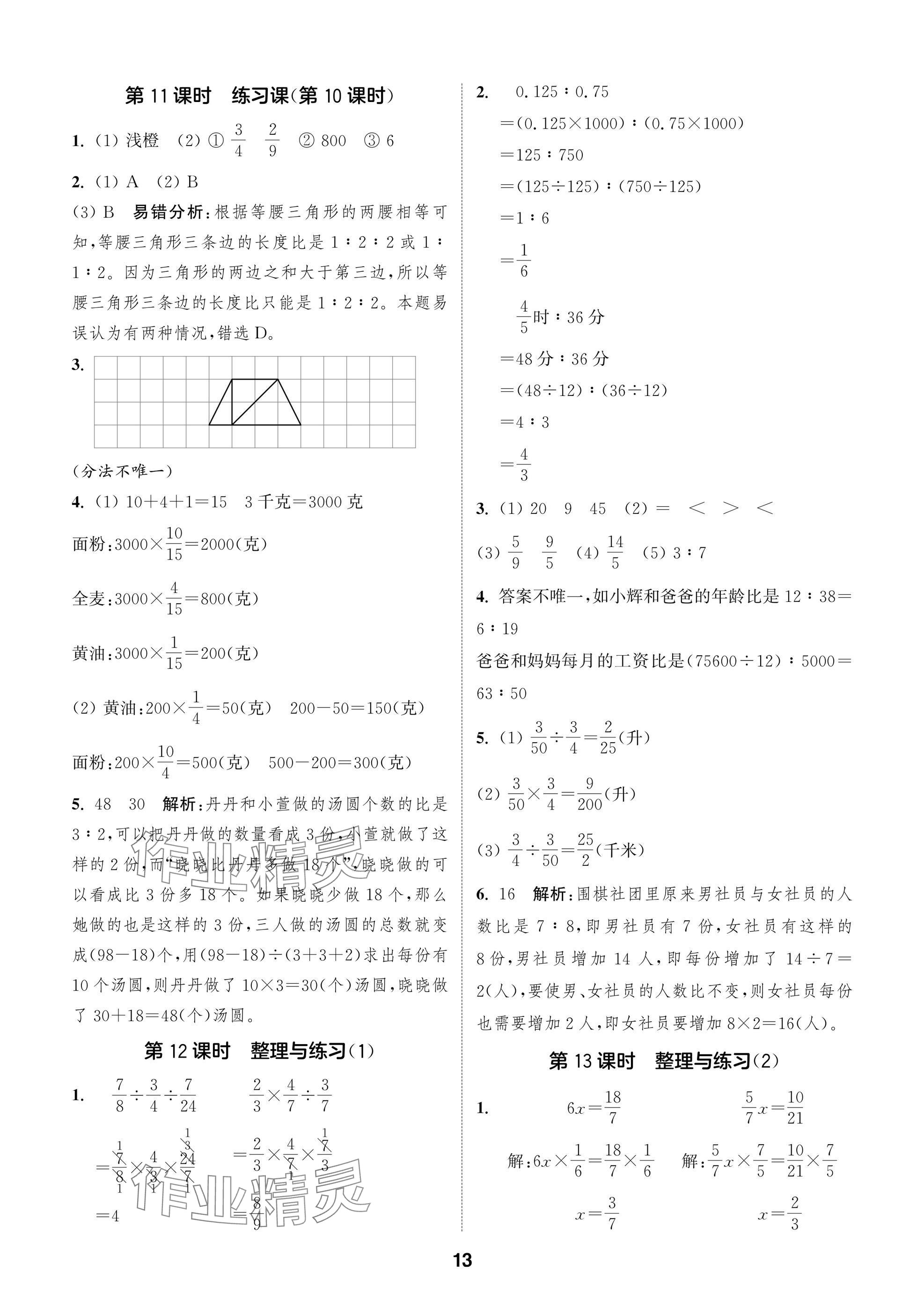 2025年课时作业本闯关练六年级数学上册苏教版参考答案第13页
