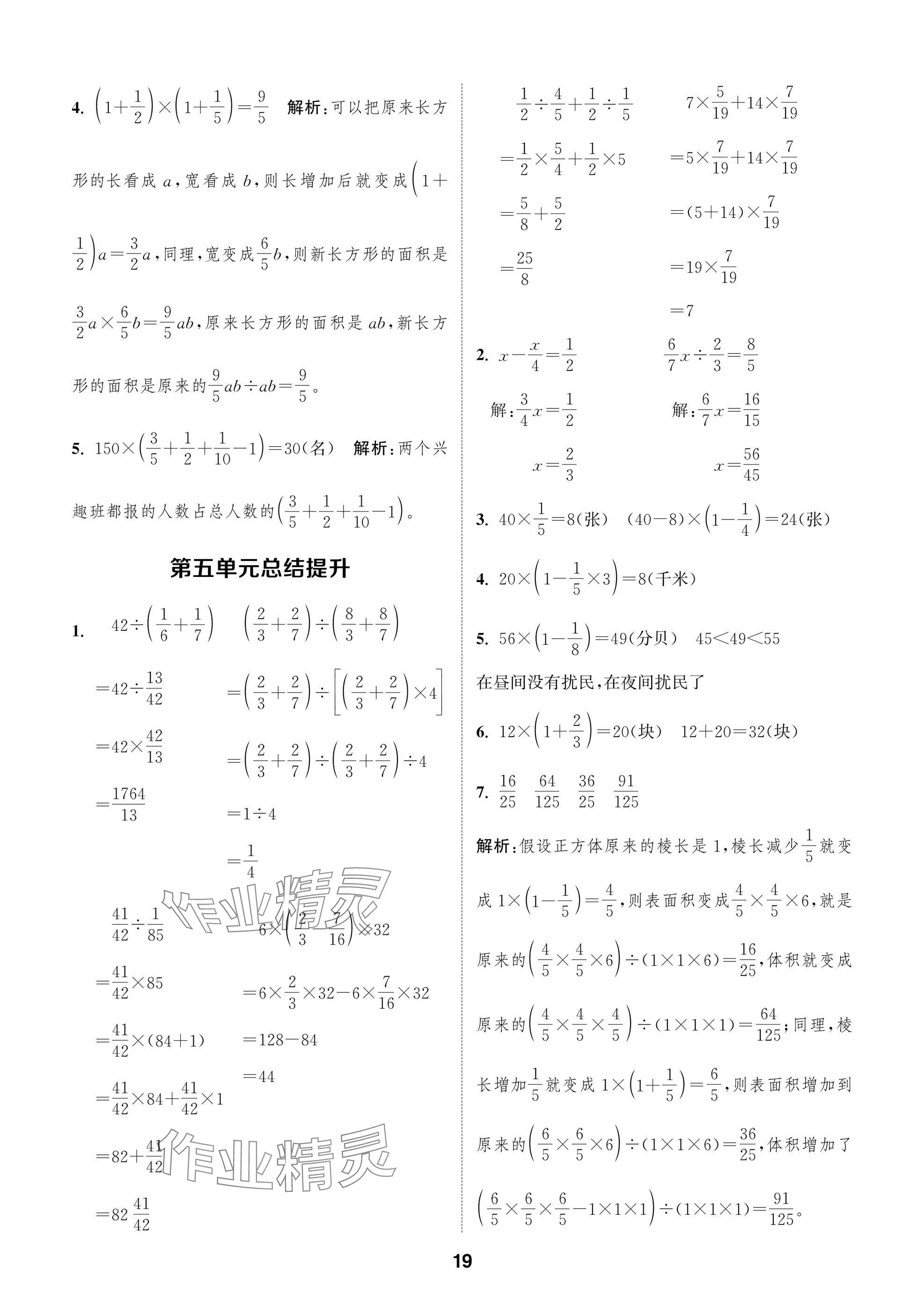 2025年课时作业本闯关练六年级数学上册苏教版参考答案第19页