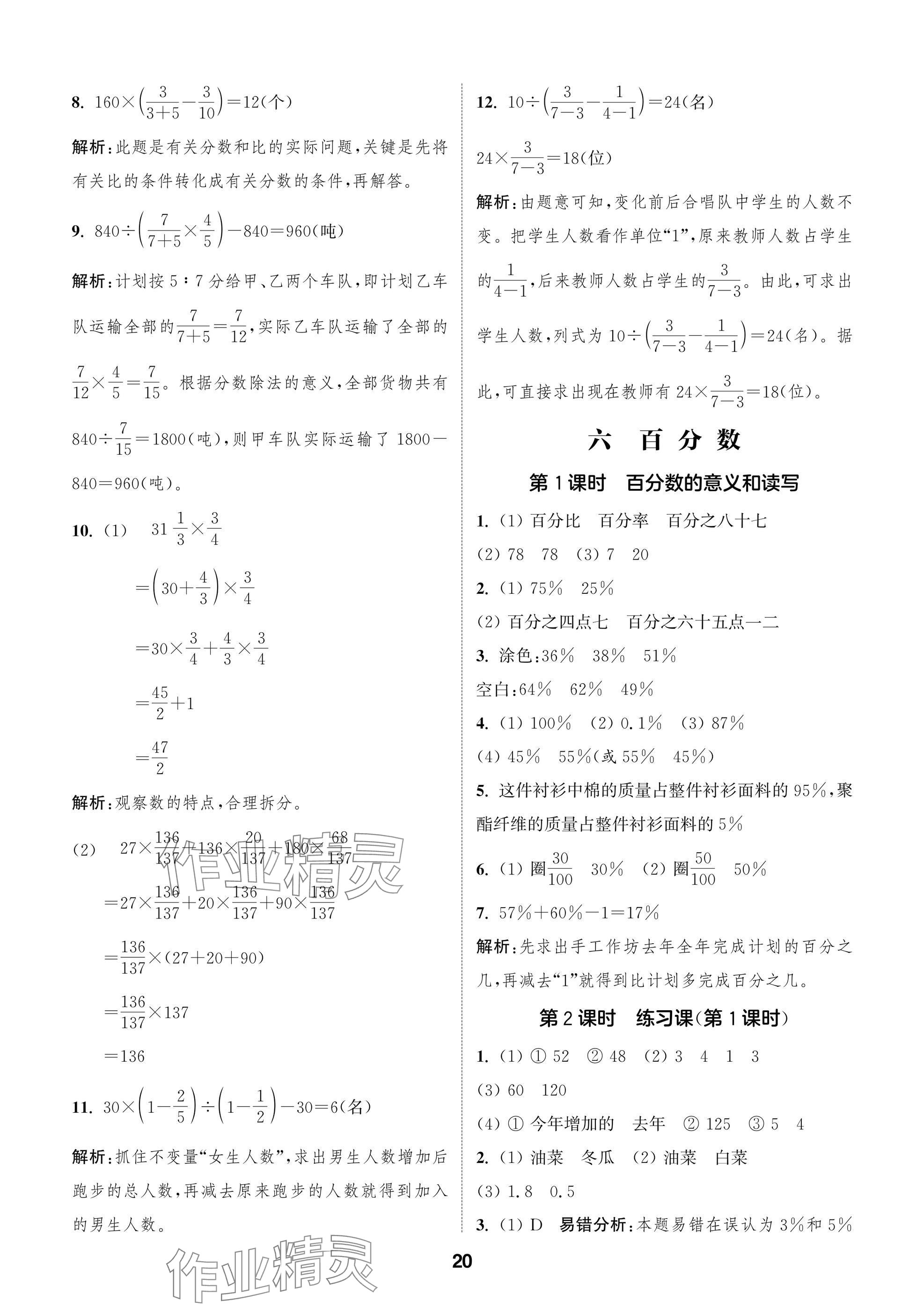 2025年课时作业本闯关练六年级数学上册苏教版参考答案第20页