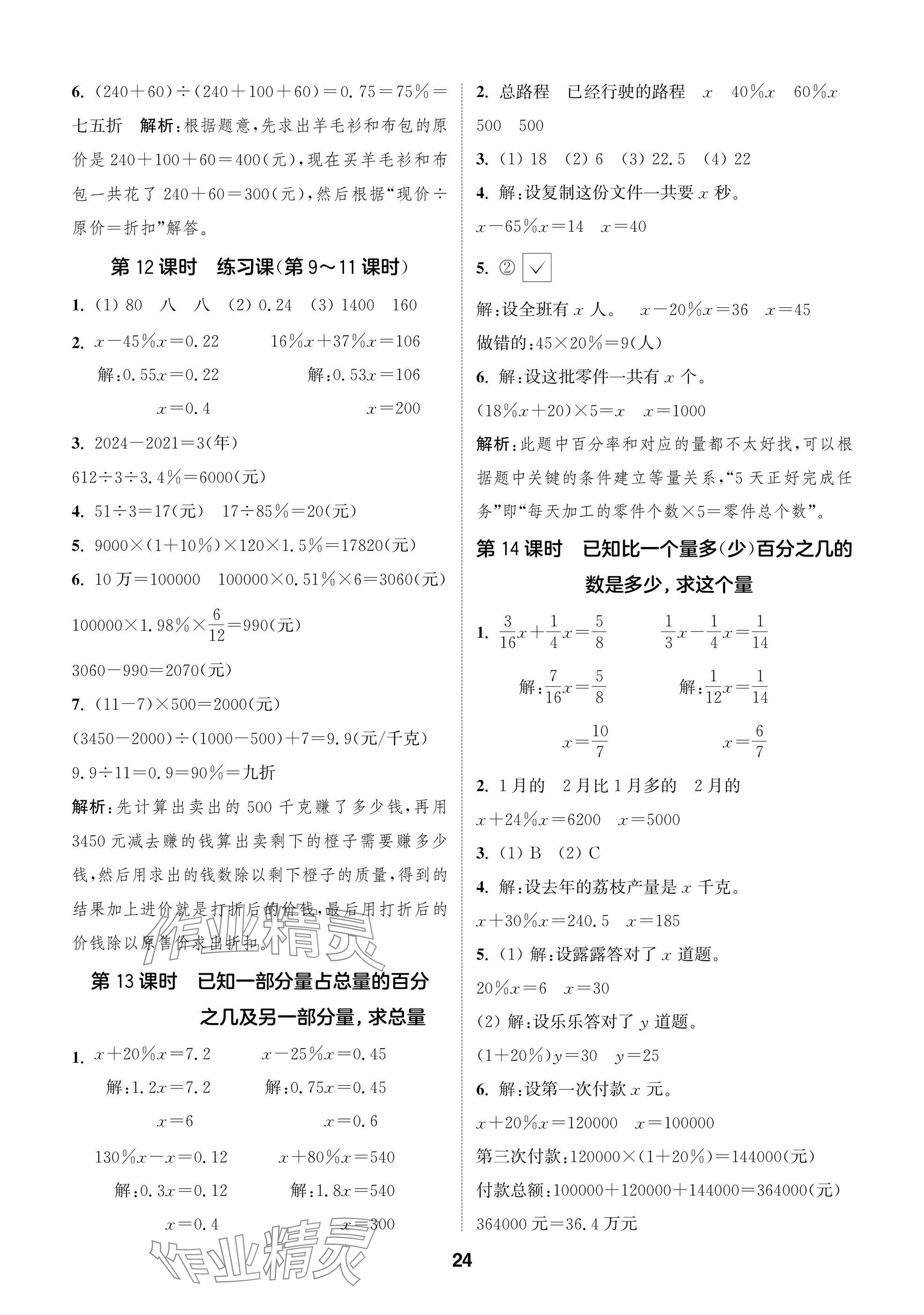 2025年课时作业本闯关练六年级数学上册苏教版参考答案第24页