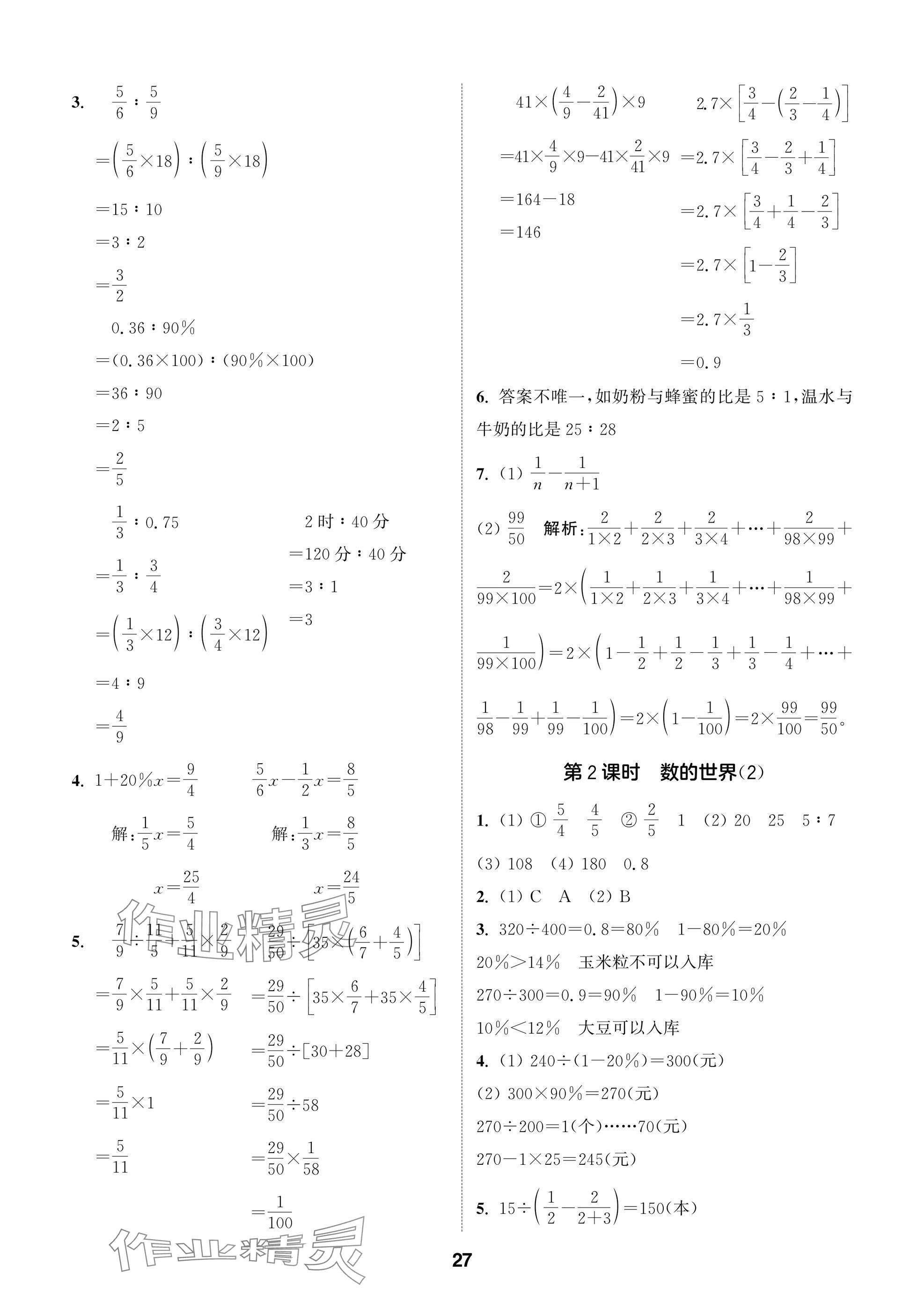 2025年课时作业本闯关练六年级数学上册苏教版参考答案第27页
