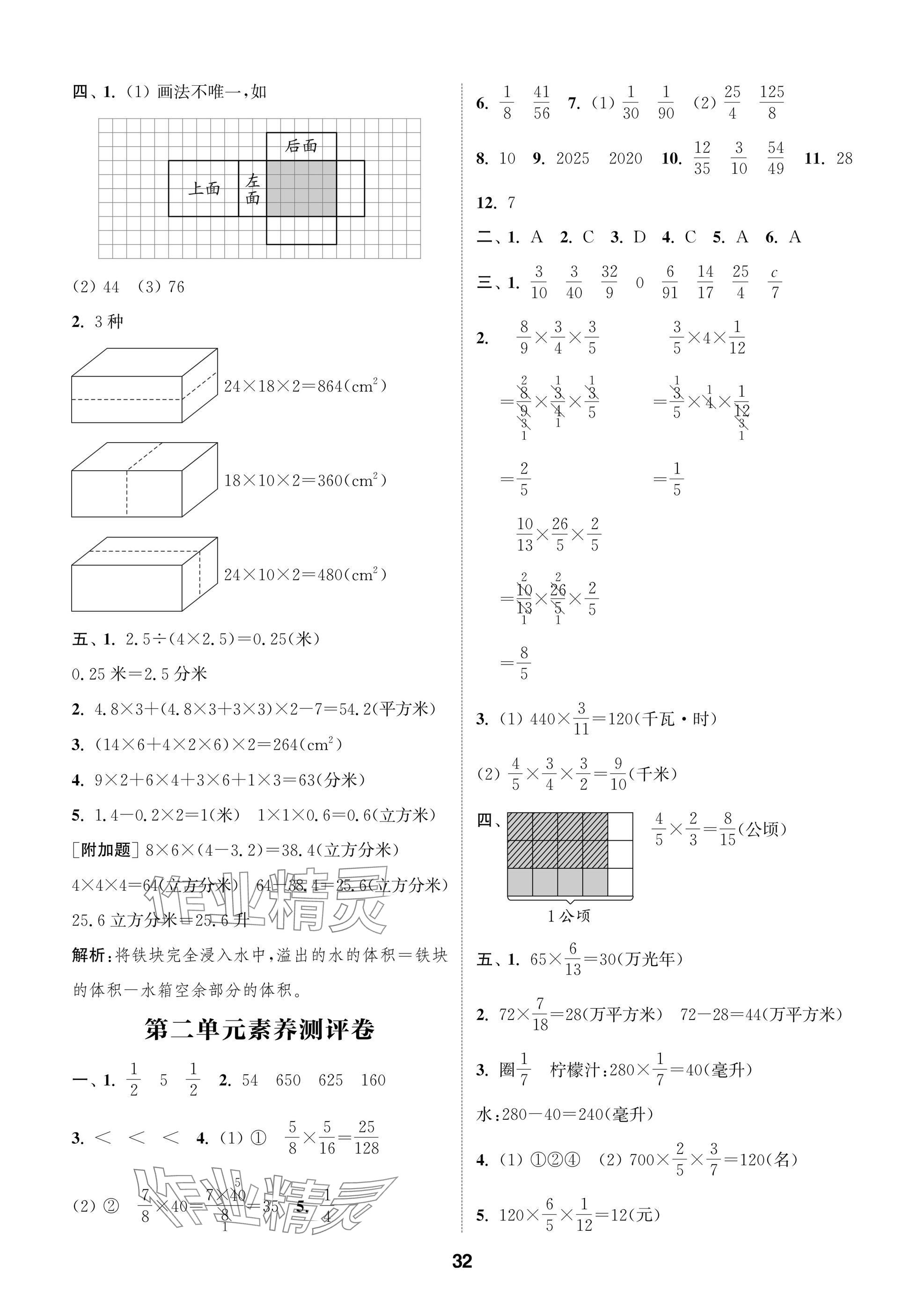 2025年课时作业本闯关练六年级数学上册苏教版参考答案第32页