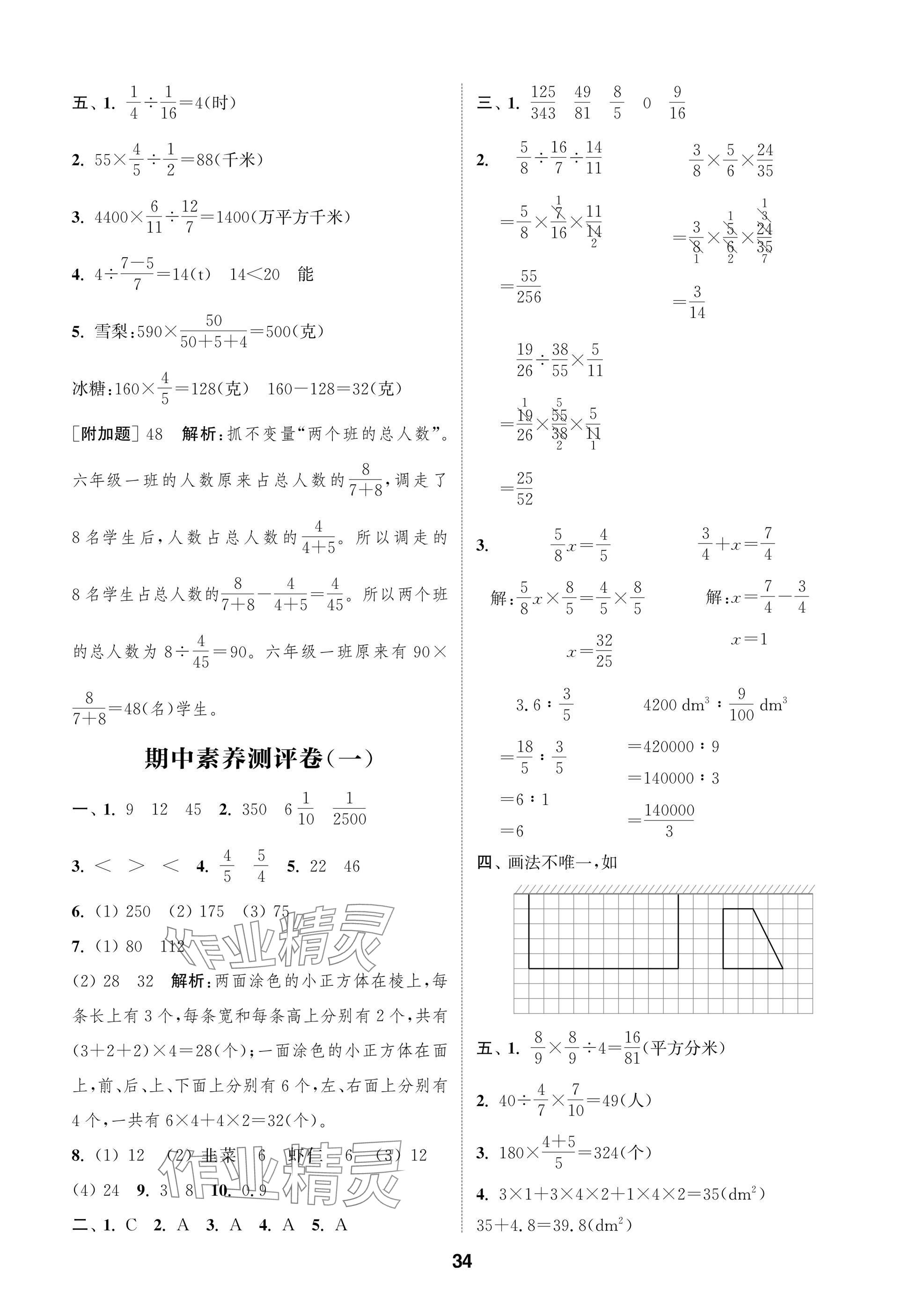 2025年课时作业本闯关练六年级数学上册苏教版参考答案第34页