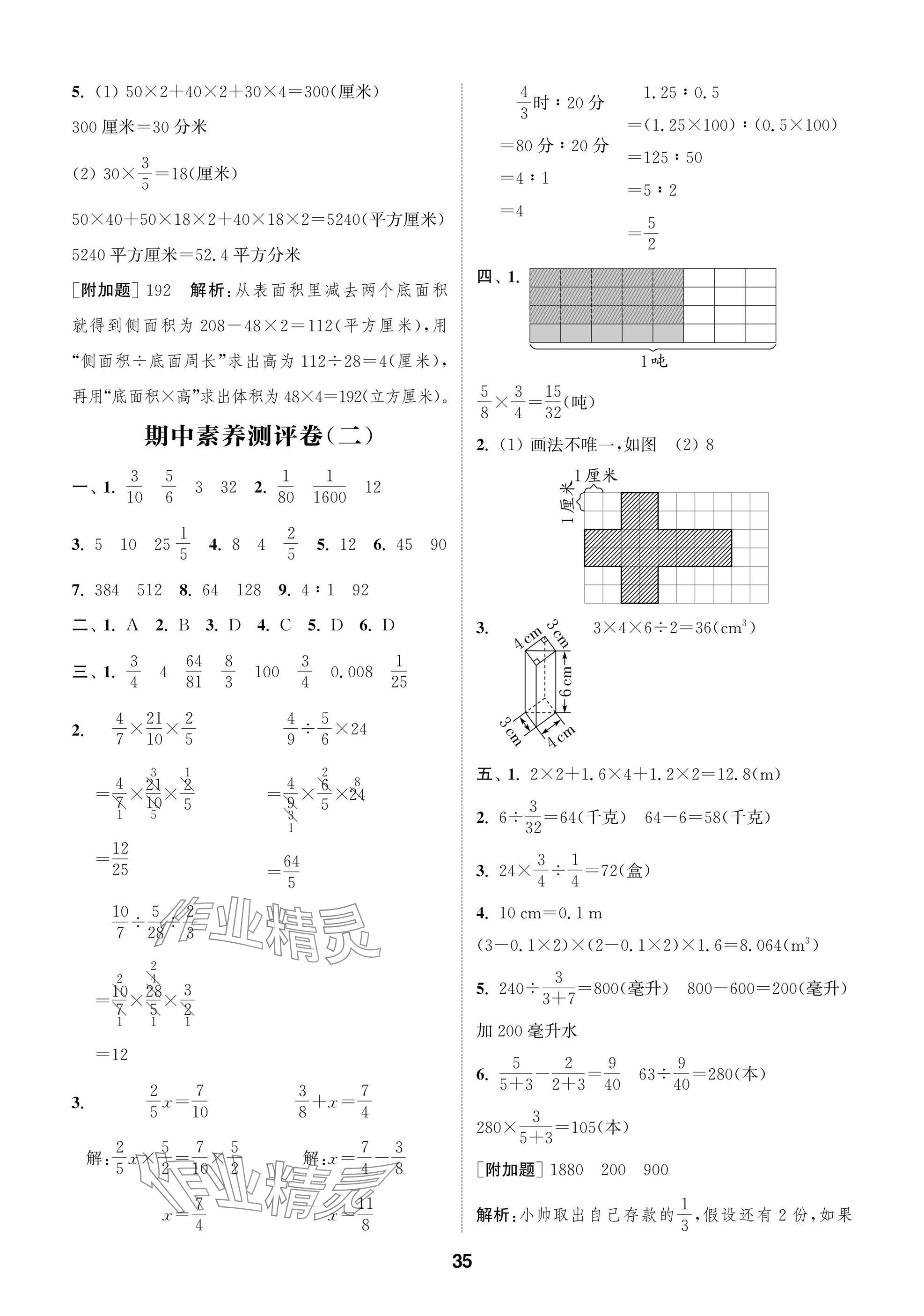 2025年课时作业本闯关练六年级数学上册苏教版参考答案第35页