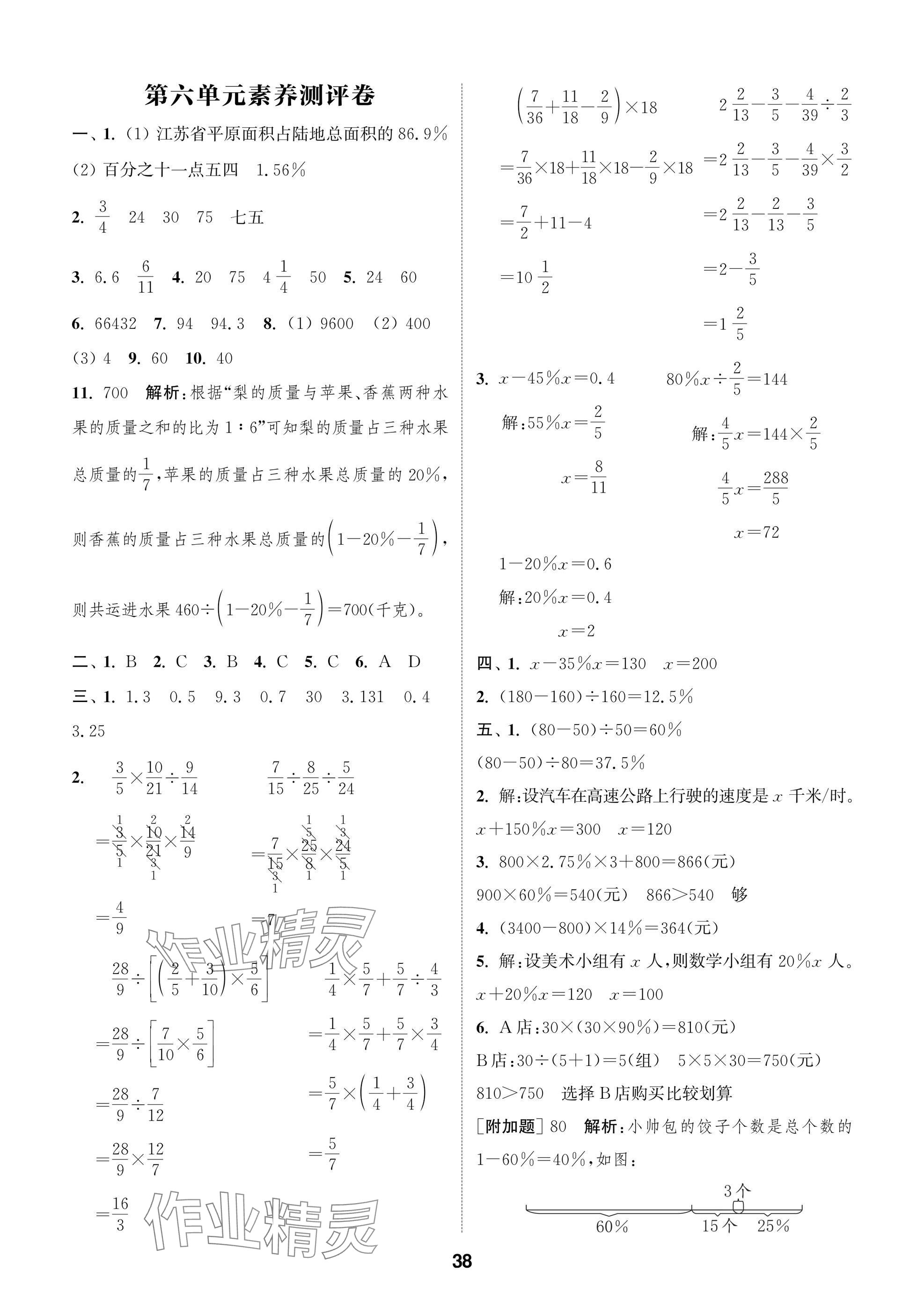 2025年课时作业本闯关练六年级数学上册苏教版参考答案第38页