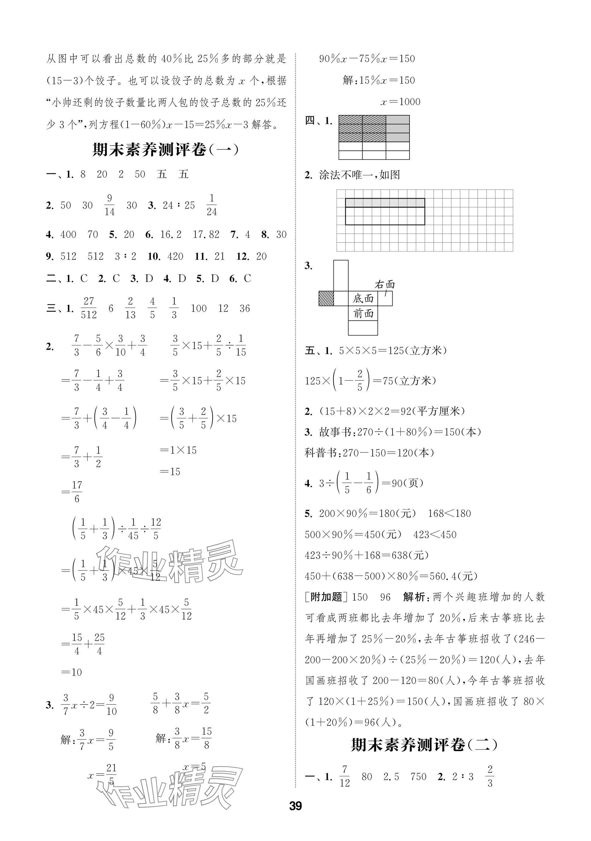 2025年课时作业本闯关练六年级数学上册苏教版参考答案第39页