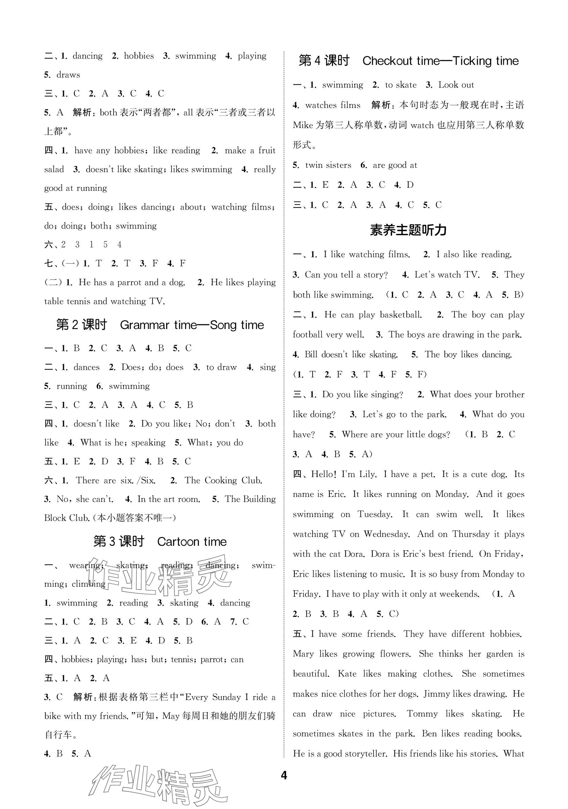 2025年课时作业本闯关练五年级英语上册译林版参考答案第4页