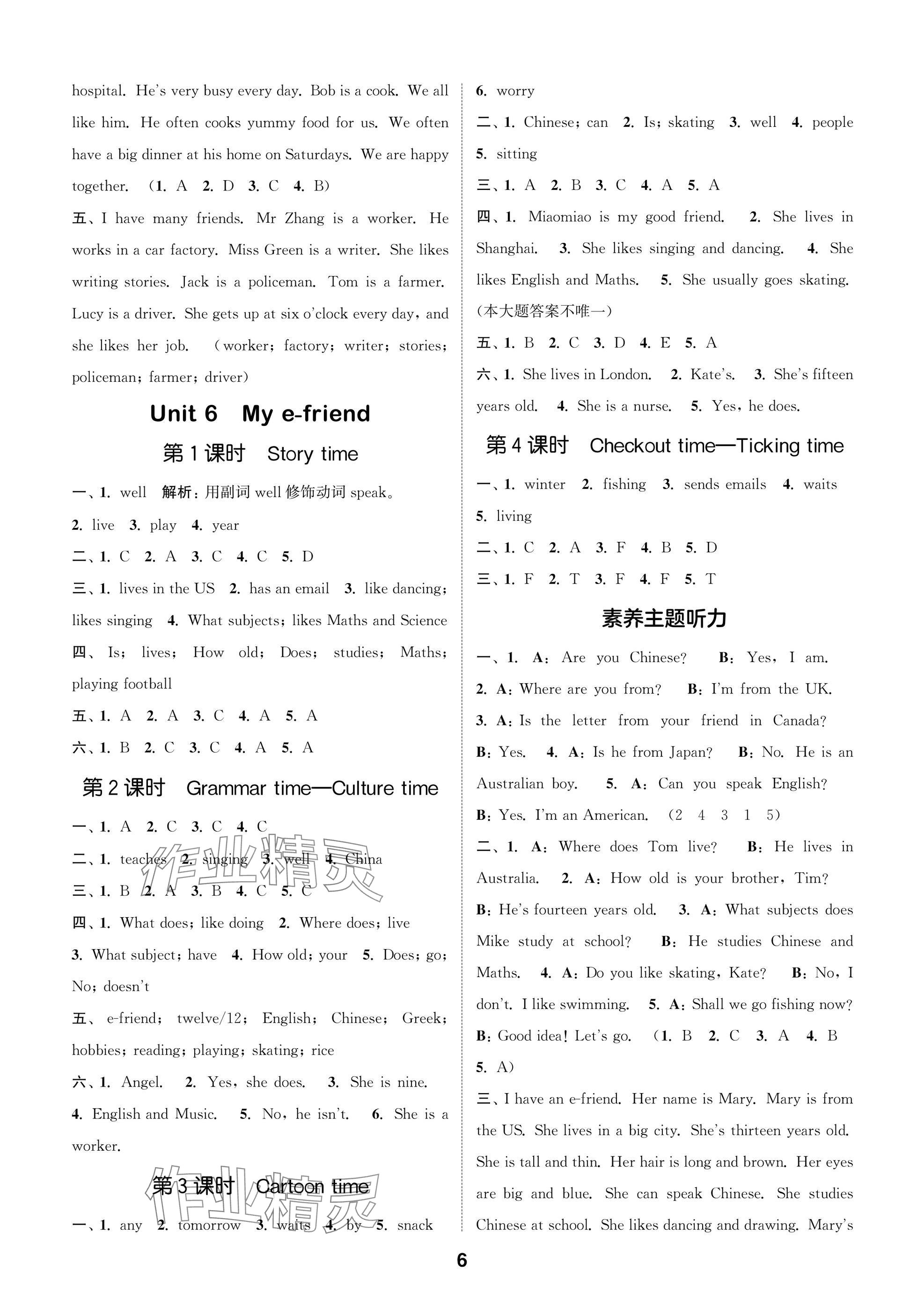2025年课时作业本闯关练五年级英语上册译林版参考答案第6页