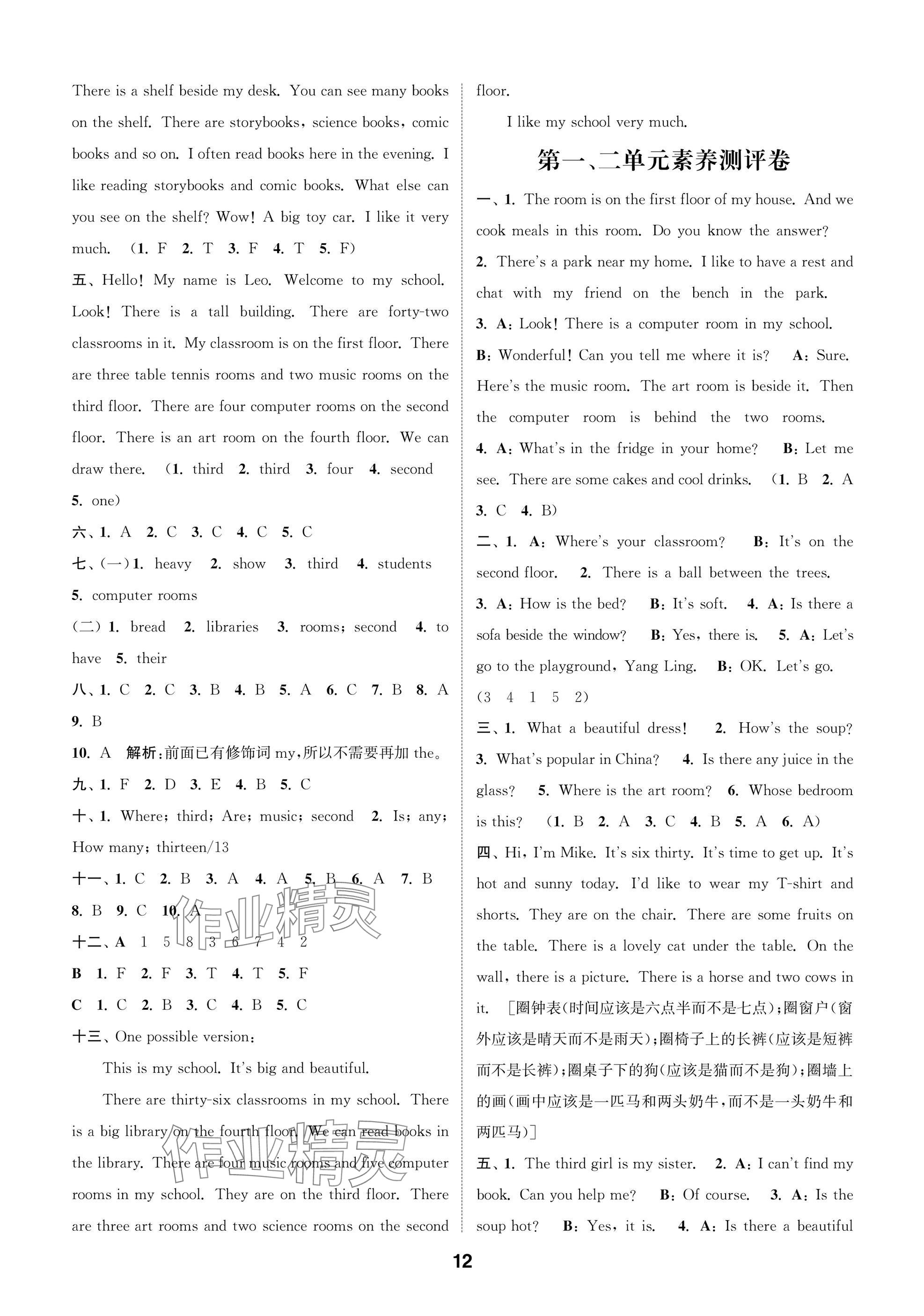 2025年课时作业本闯关练五年级英语上册译林版参考答案第12页