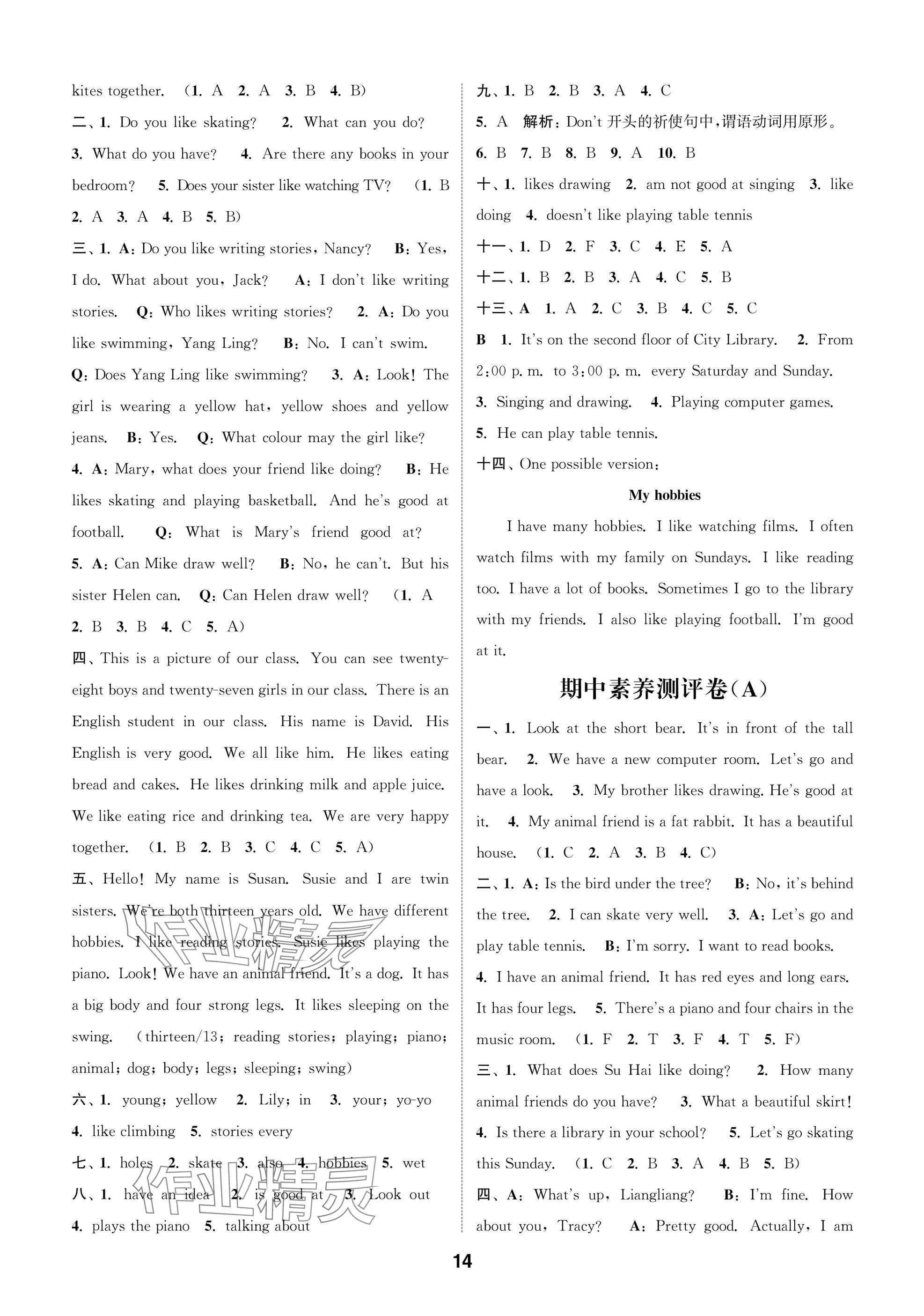 2025年课时作业本闯关练五年级英语上册译林版参考答案第14页