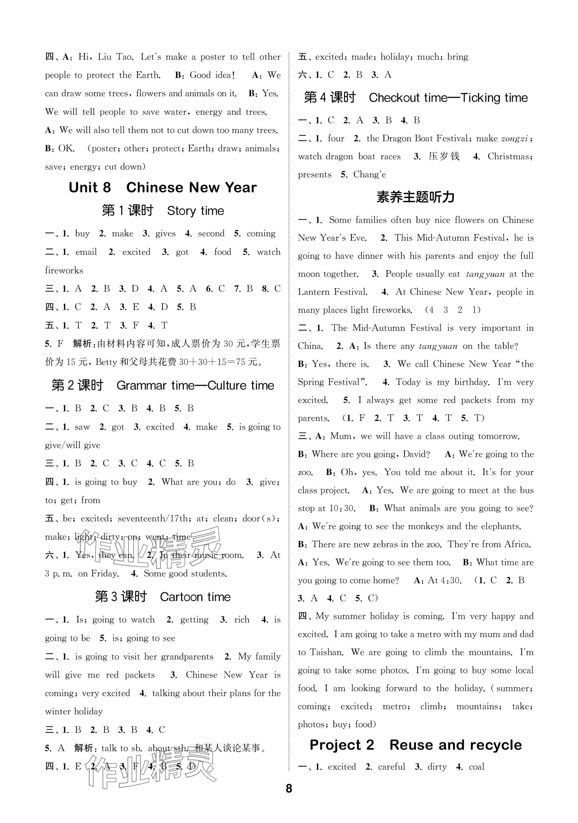 2025年课时作业本闯关练六年级英语上册译林版参考答案第8页