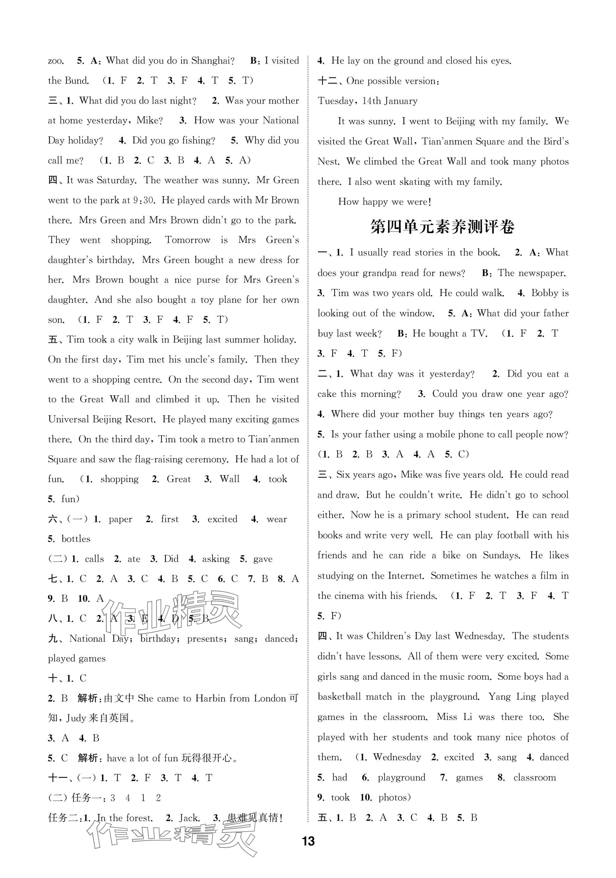 2025年课时作业本闯关练六年级英语上册译林版参考答案第13页
