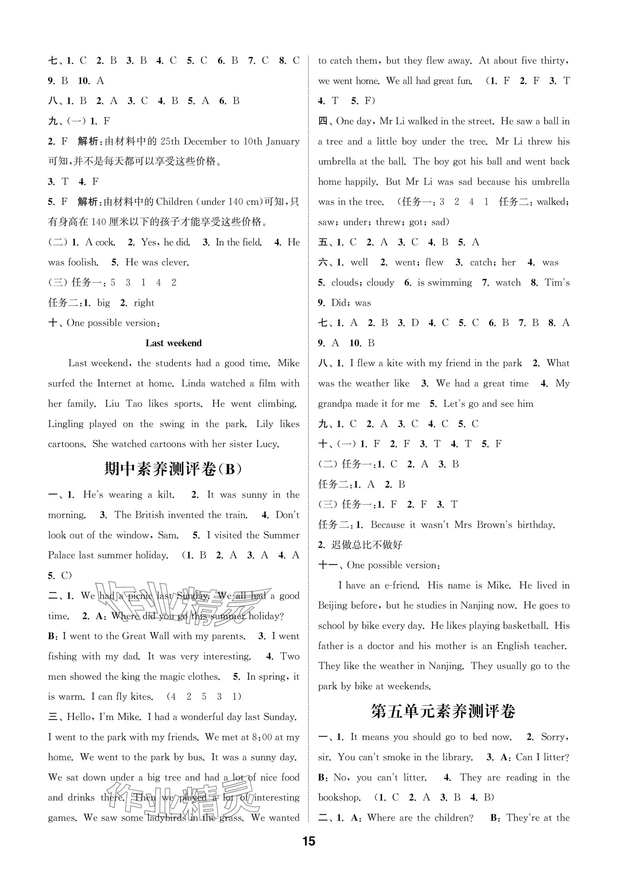 2025年课时作业本闯关练六年级英语上册译林版参考答案第15页