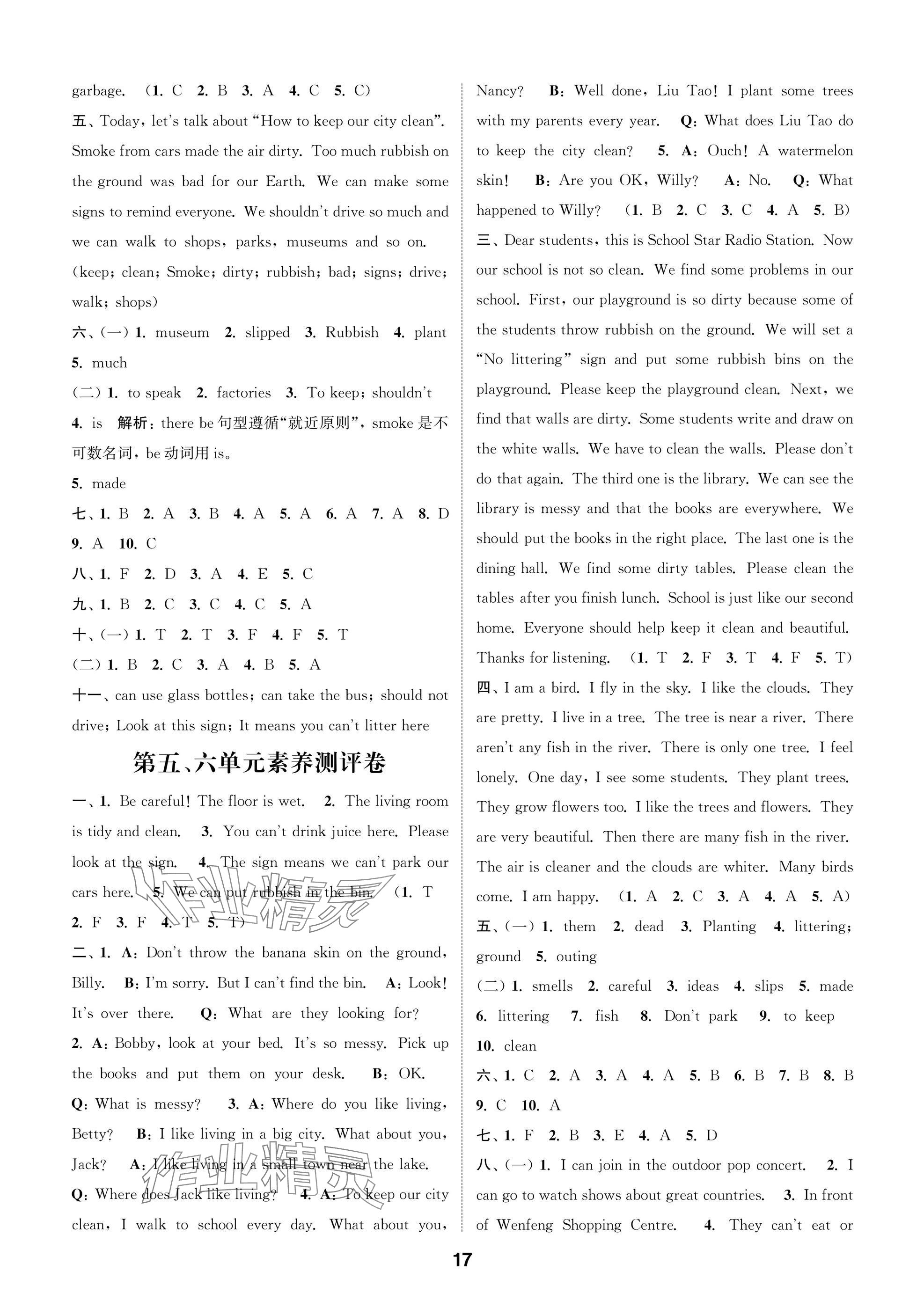 2025年课时作业本闯关练六年级英语上册译林版参考答案第17页