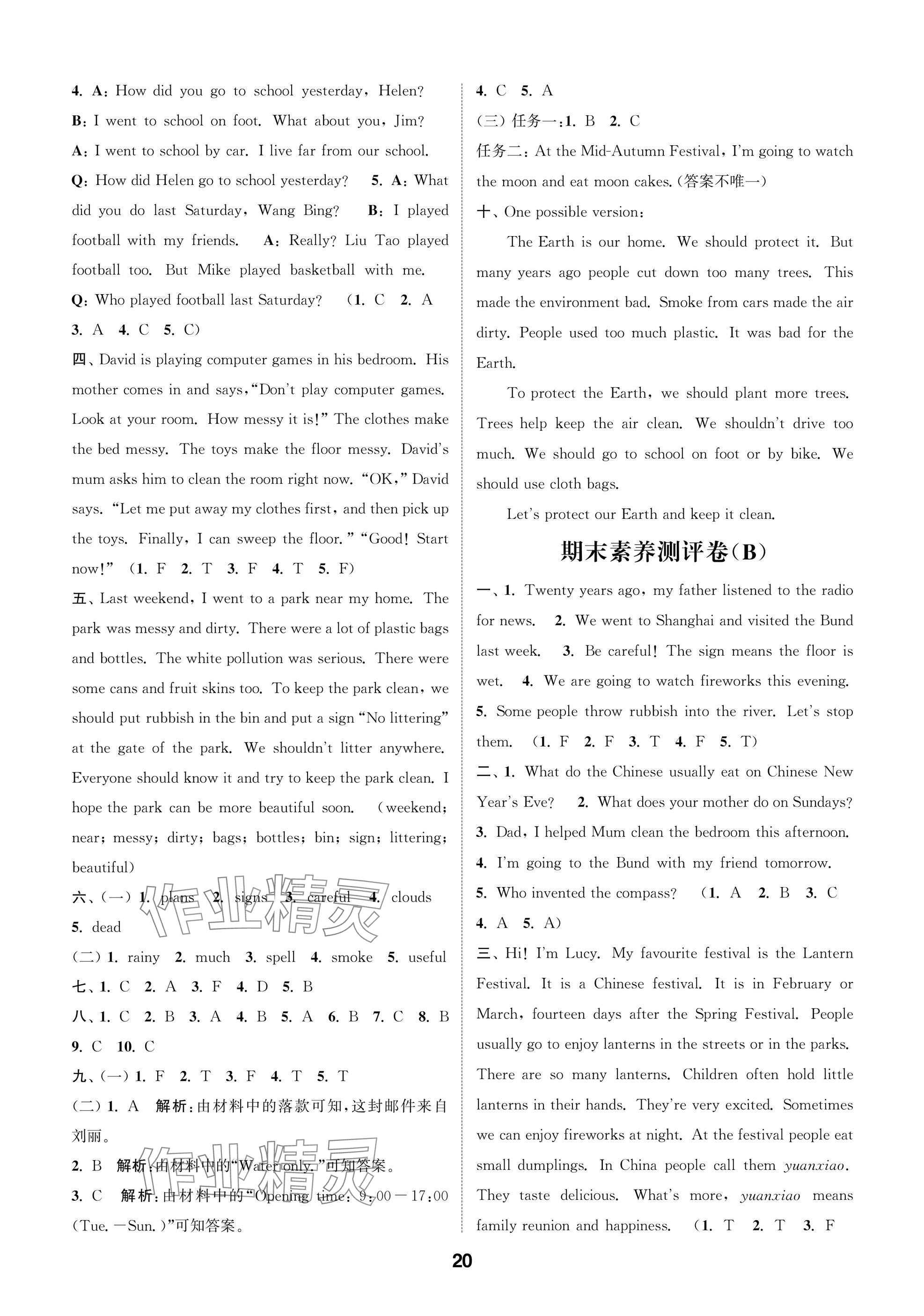 2025年课时作业本闯关练六年级英语上册译林版参考答案第20页