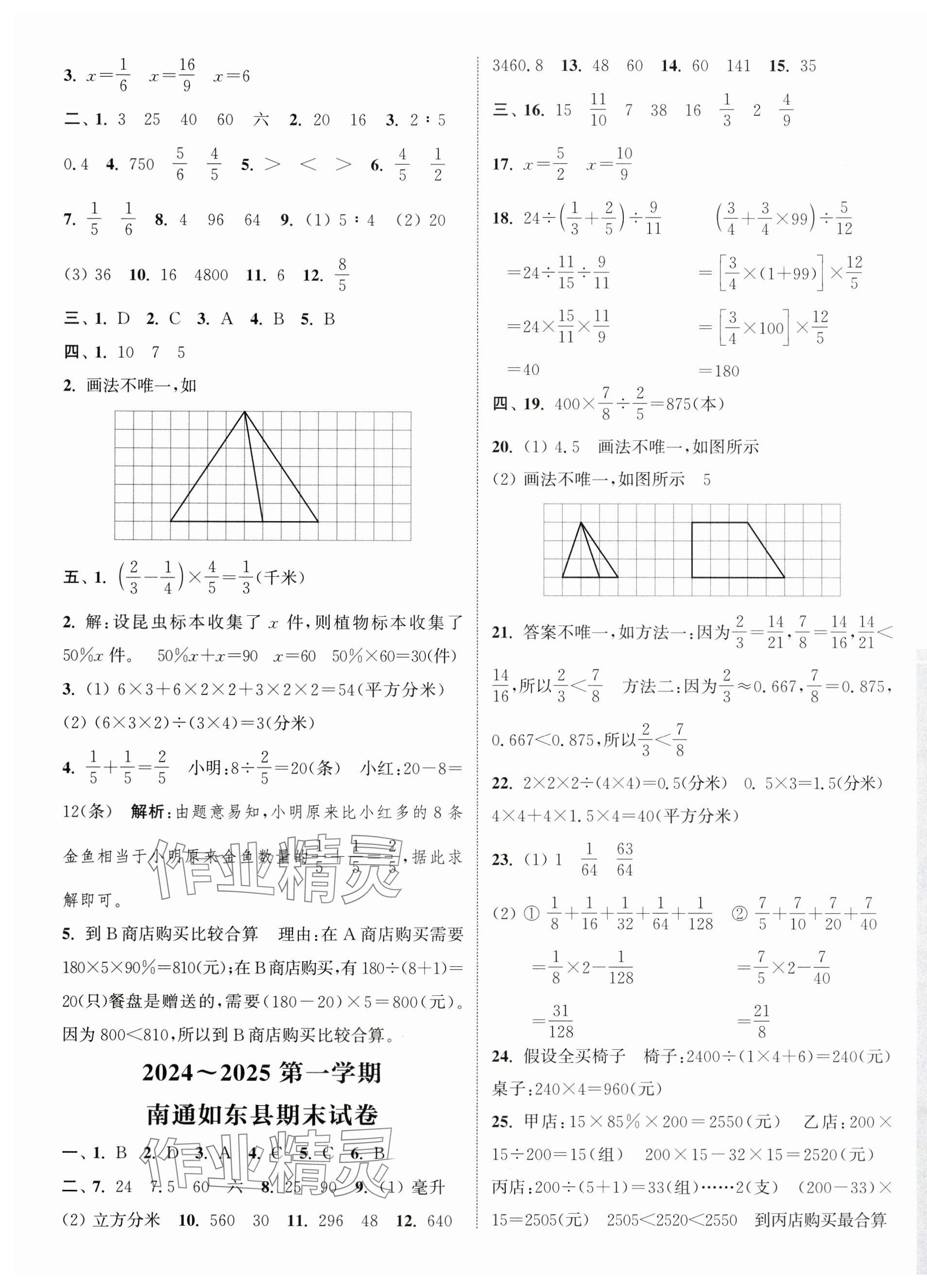 2025年课时作业本闯关练六年级数学上册苏教版参考答案第43页