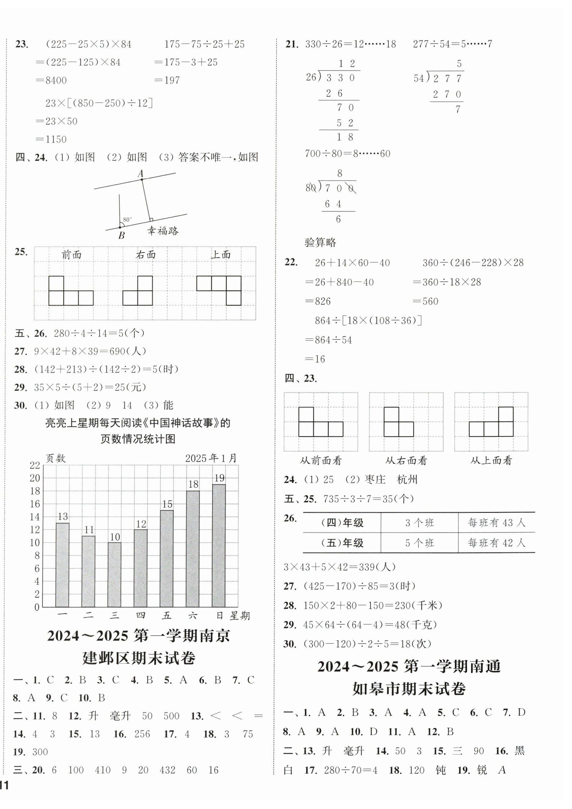 2025年课时作业本闯关练四年级数学上册苏教版参考答案第34页