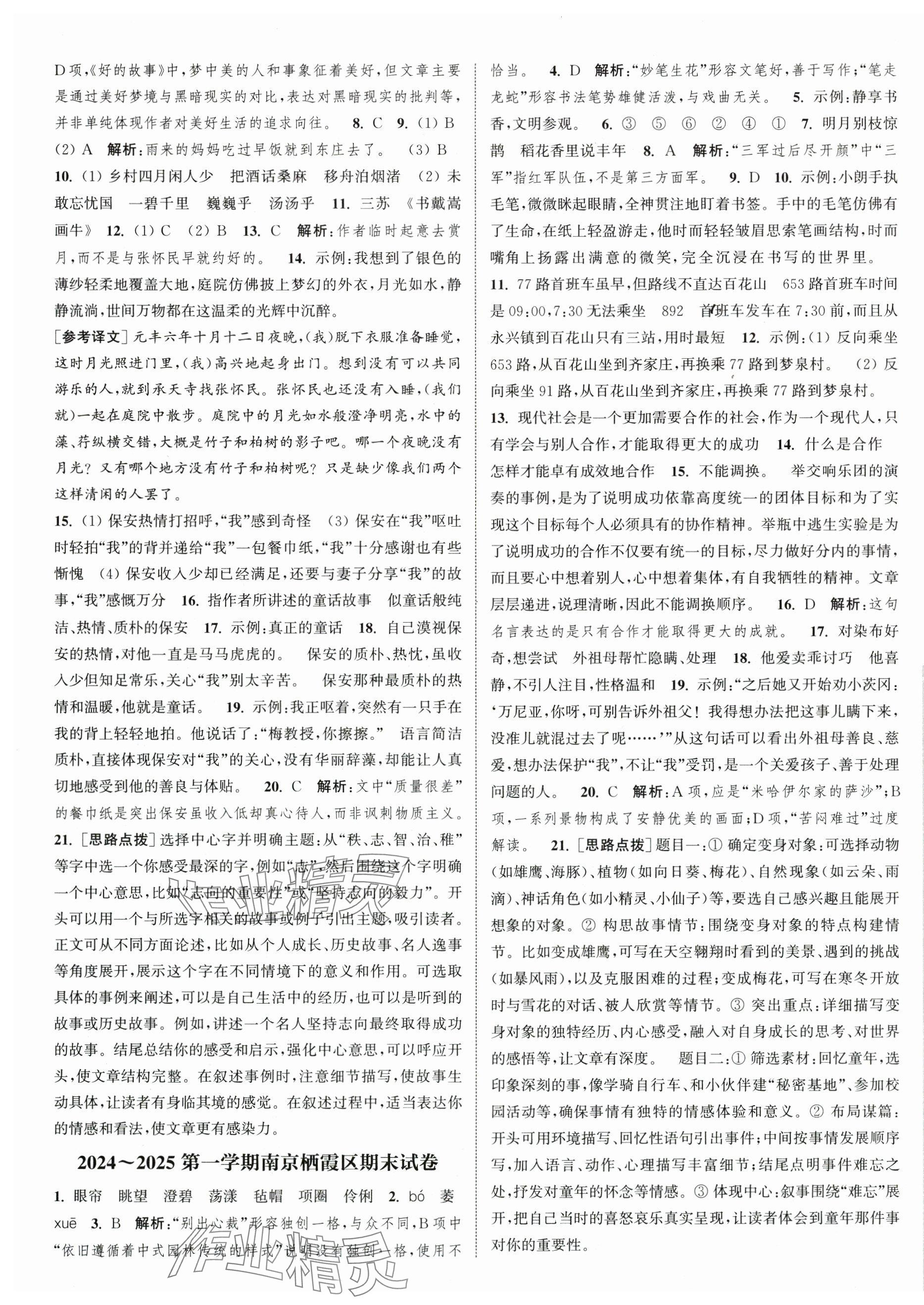 2025年课时作业本闯关练六年级语文上册人教版参考答案第35页