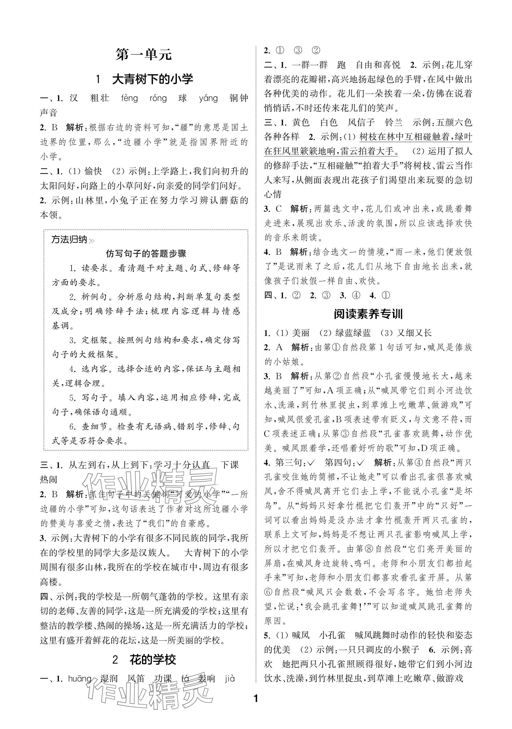 2025年课时作业本闯关练三年级语文上册人教版参考答案第1页