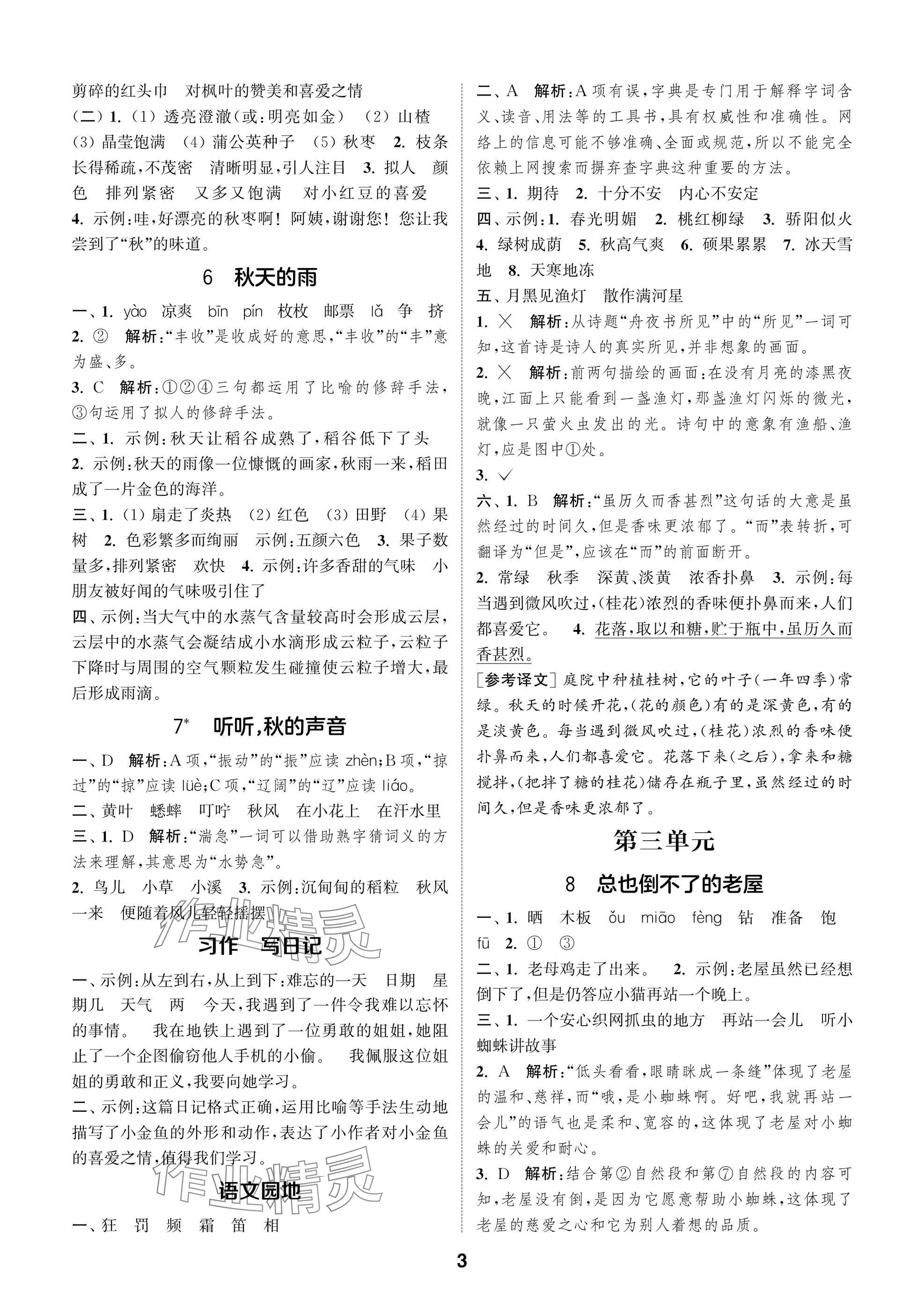 2025年课时作业本闯关练三年级语文上册人教版参考答案第3页