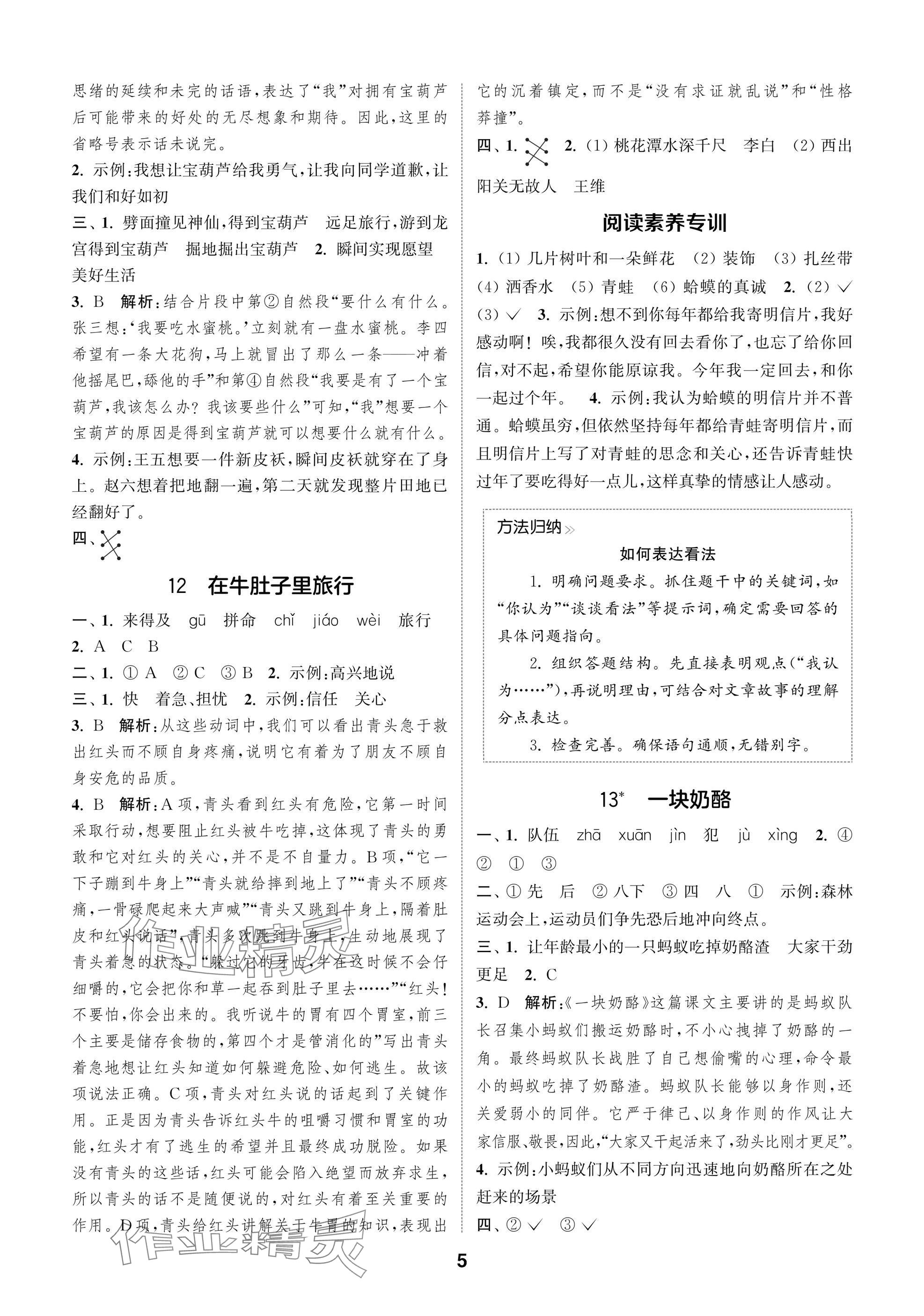 2025年课时作业本闯关练三年级语文上册人教版参考答案第5页