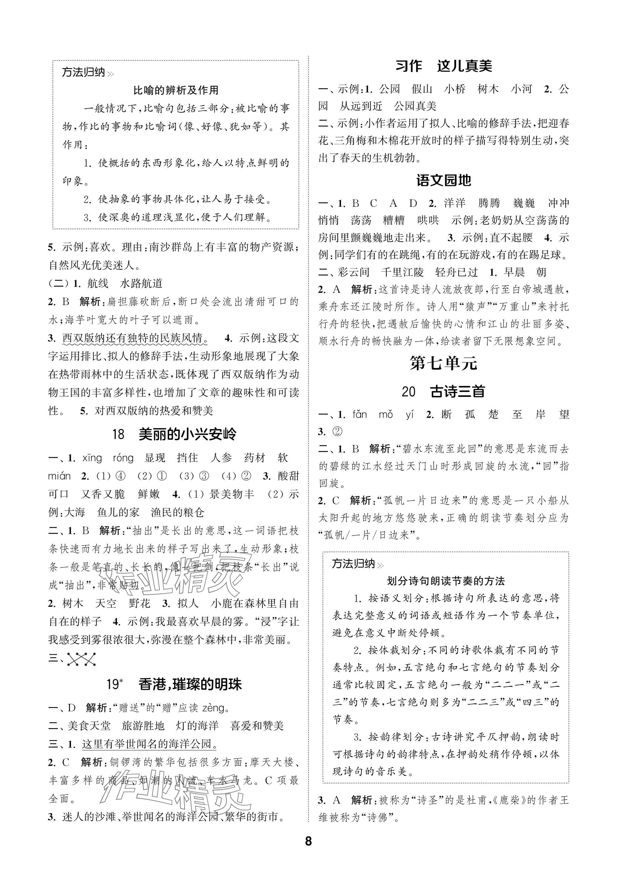 2025年课时作业本闯关练三年级语文上册人教版参考答案第8页