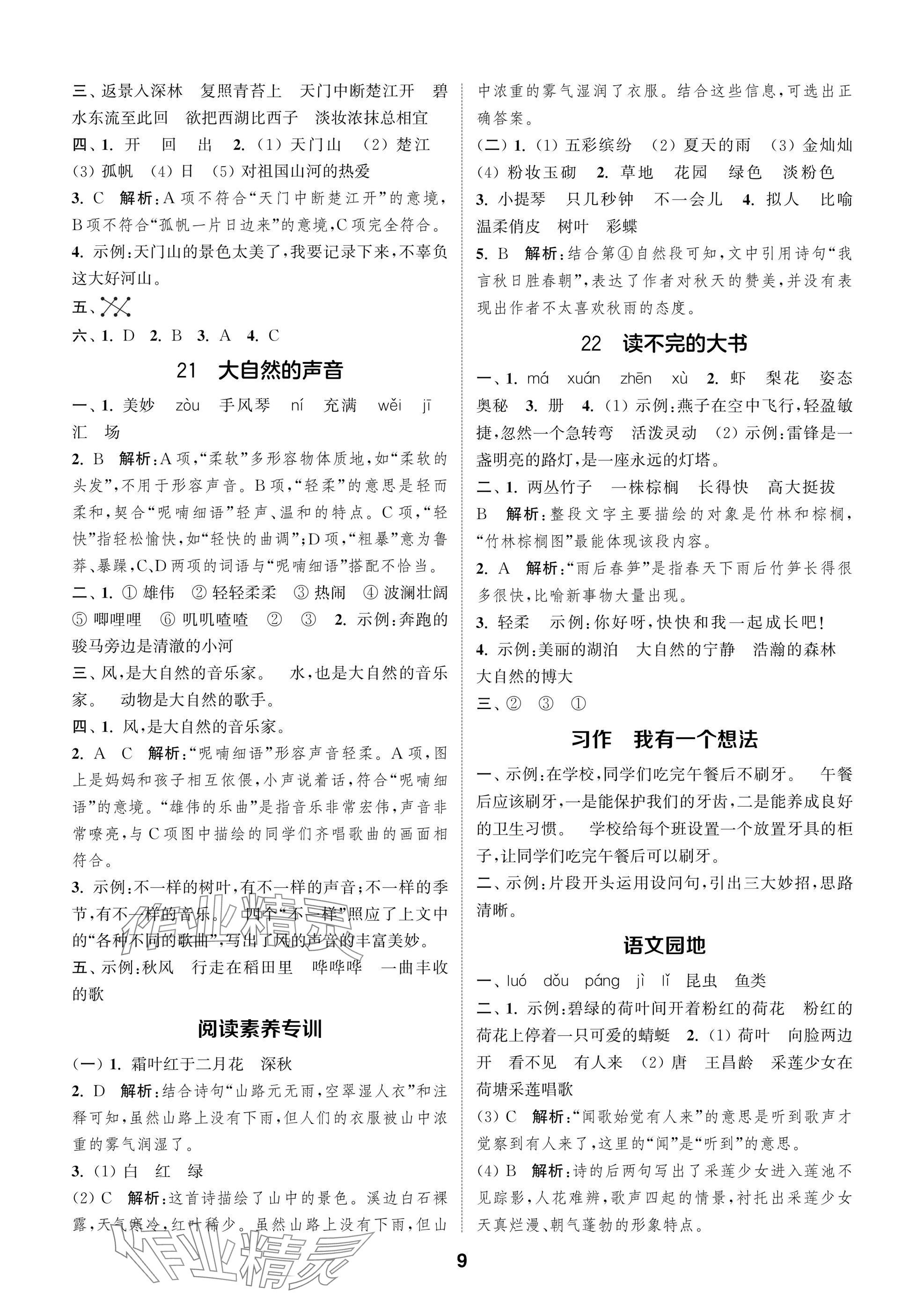 2025年课时作业本闯关练三年级语文上册人教版参考答案第9页