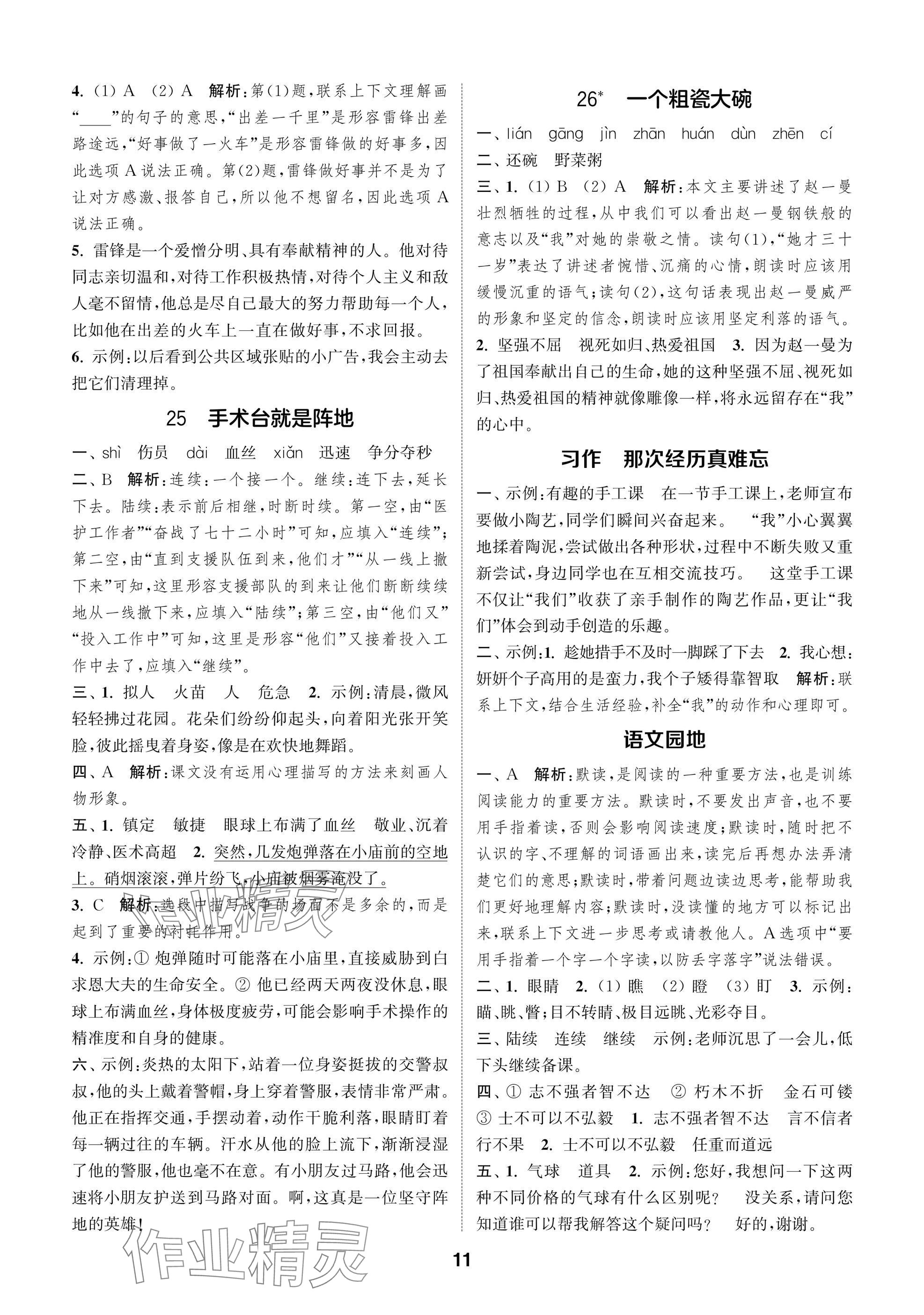 2025年课时作业本闯关练三年级语文上册人教版参考答案第11页