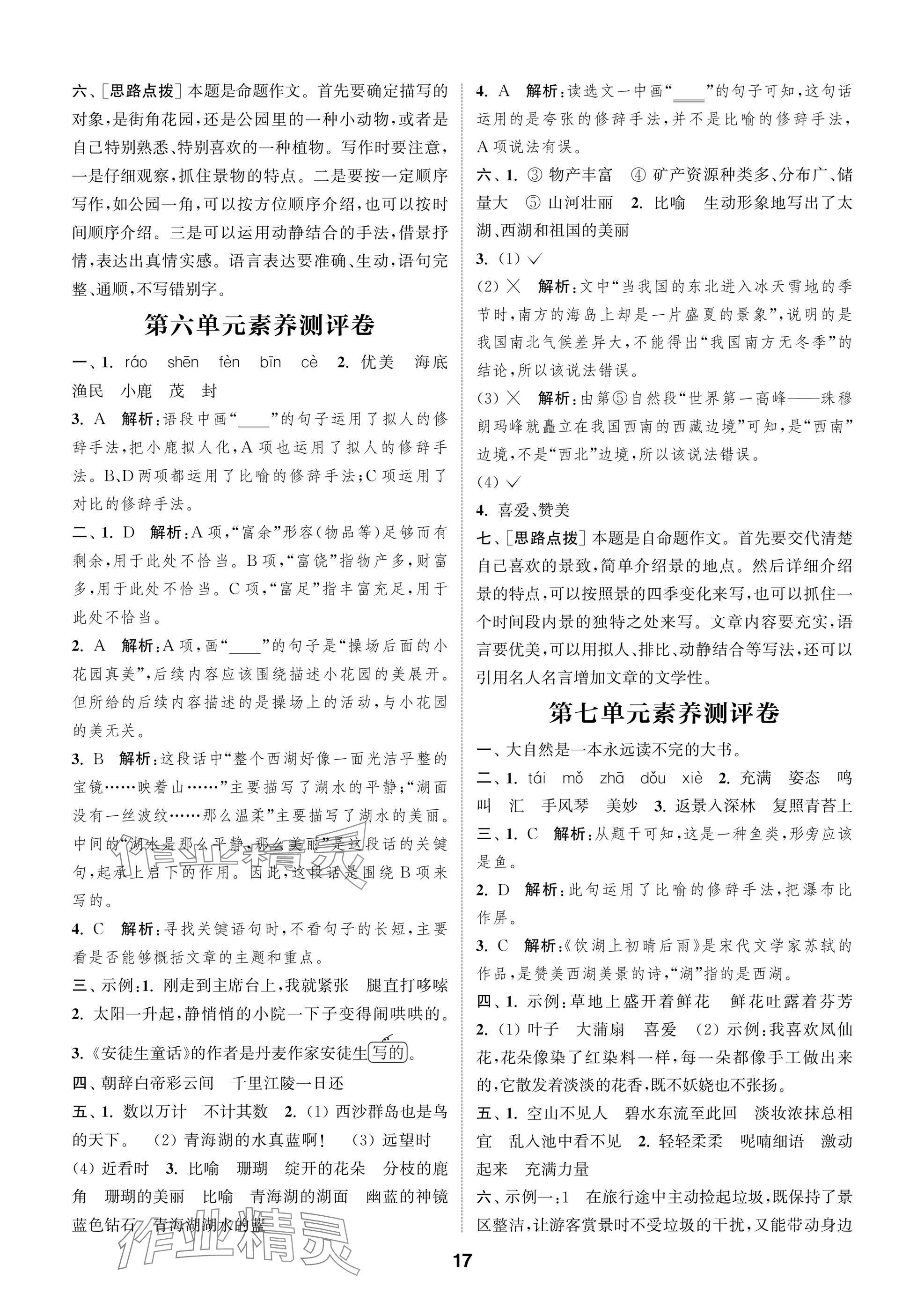 2025年课时作业本闯关练三年级语文上册人教版参考答案第17页