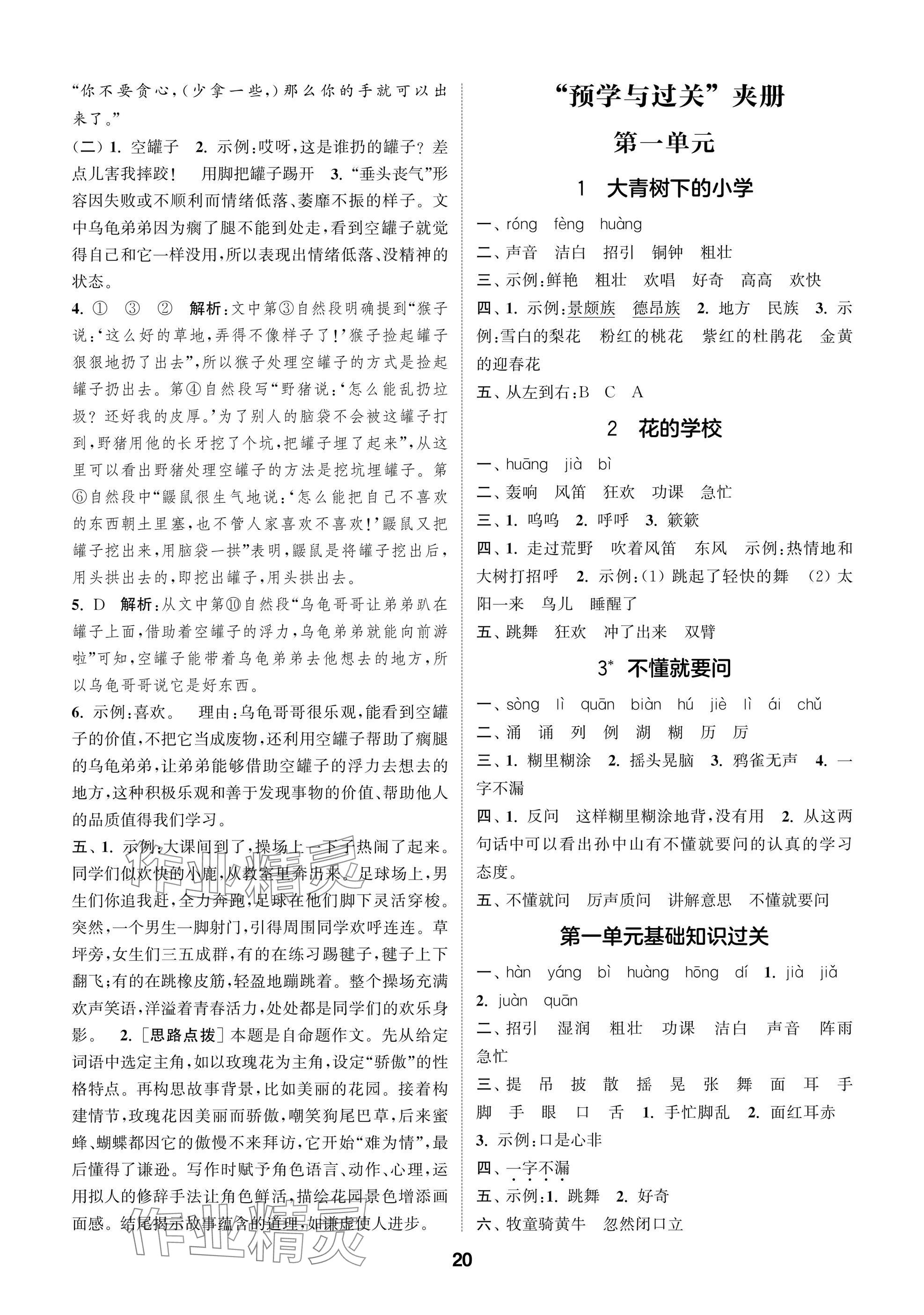2025年课时作业本闯关练三年级语文上册人教版参考答案第20页