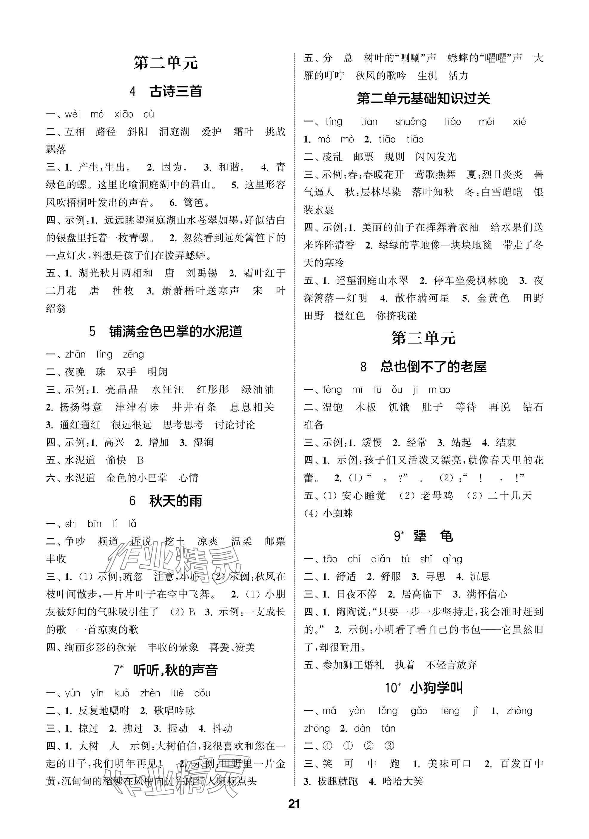 2025年课时作业本闯关练三年级语文上册人教版参考答案第21页