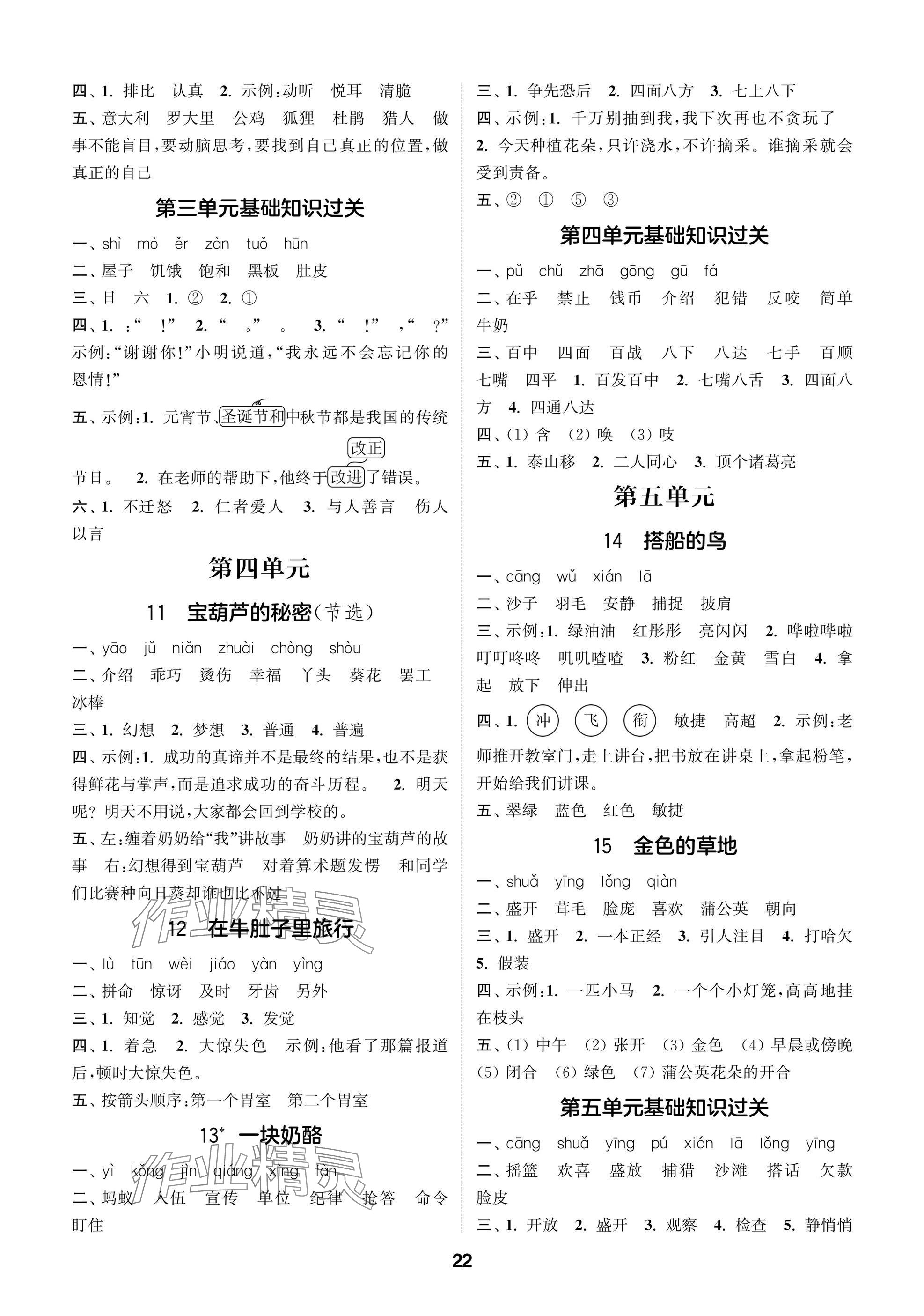 2025年课时作业本闯关练三年级语文上册人教版参考答案第22页