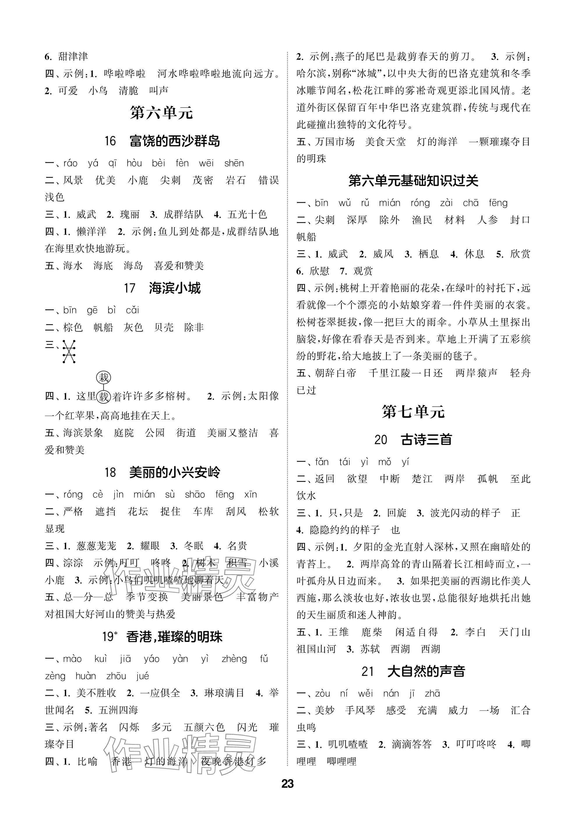 2025年课时作业本闯关练三年级语文上册人教版参考答案第23页
