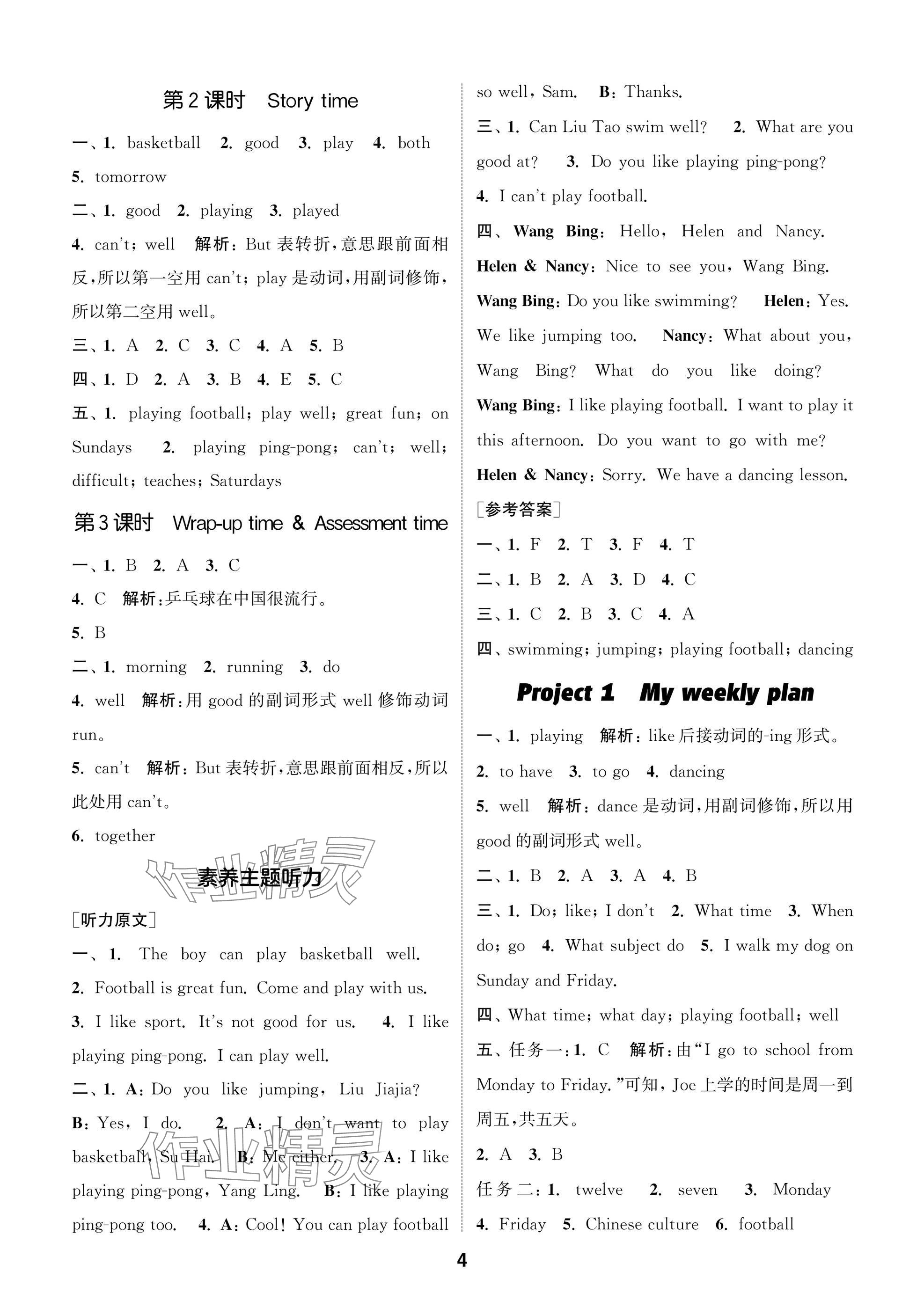 2025年课时作业本闯关练四年级英语上册译林版参考答案第4页